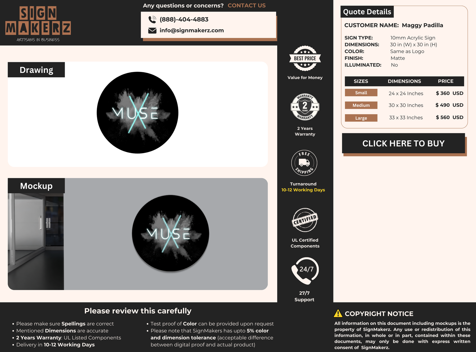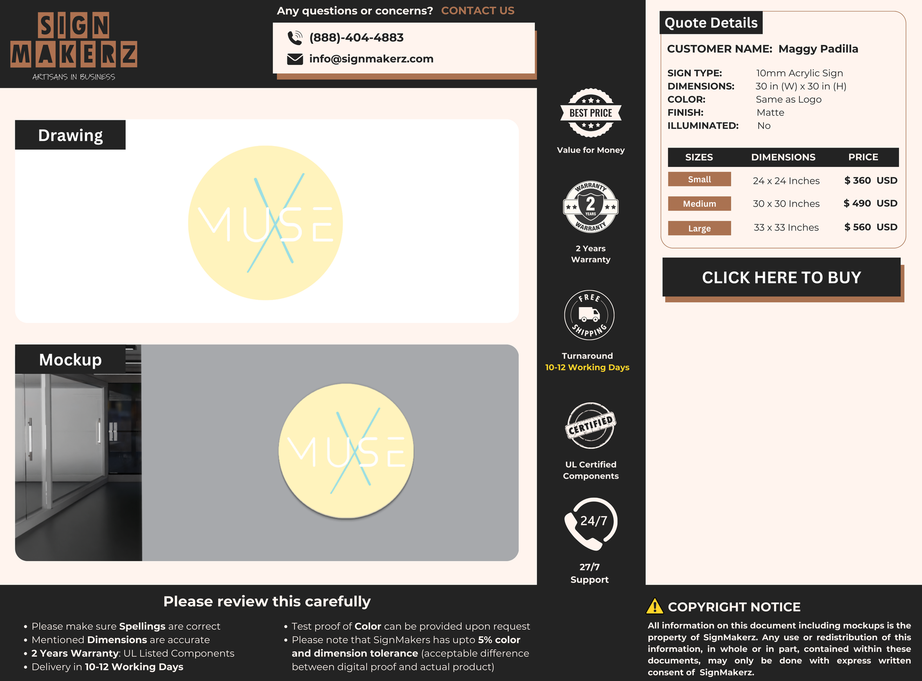 Crafted with premium material, this signage will elevate your business image, precisely mirroring your logo for a professional look.