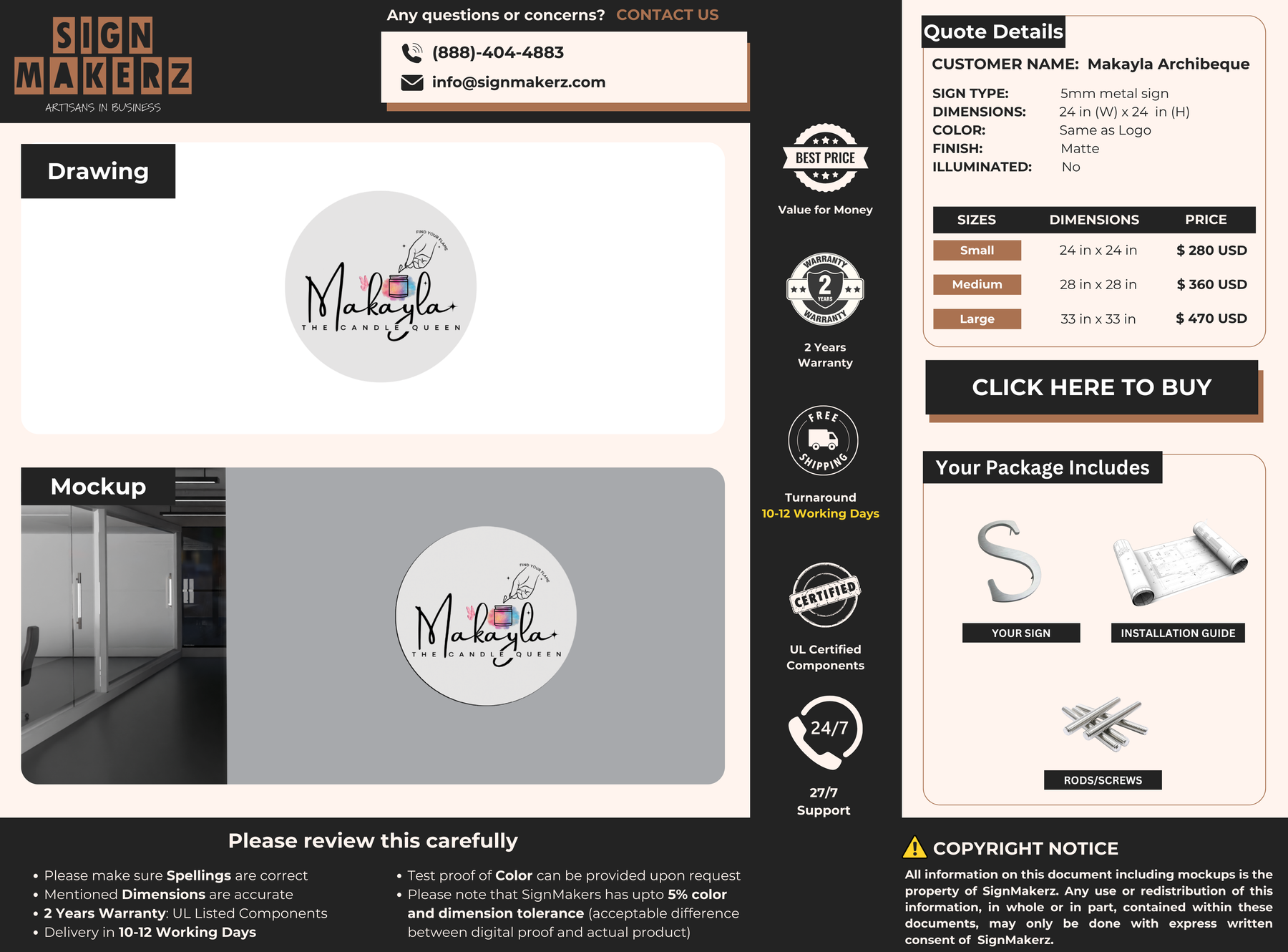 Crafted with premium material, this signage will elevate your business image, precisely mirroring your logo for a professional look.