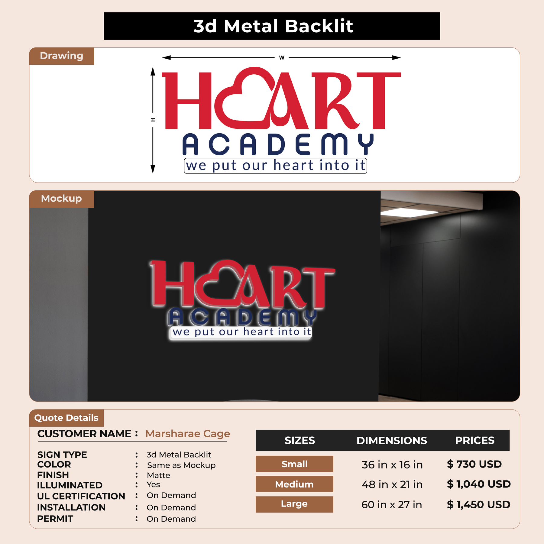 Business signage for Marsharae Cage