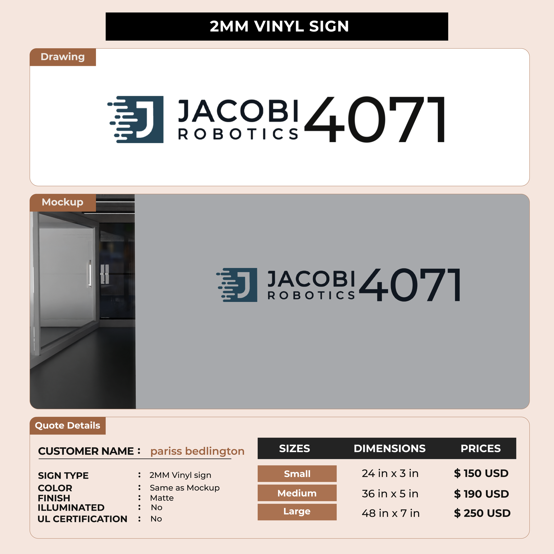 Enhance your business presence with our expertly crafted signage, made from top-quality material, to ensure longevity and durability. Fully customizable to reflect your unique brand identity, our signage offers a professional and polished appearance. Easy to install and low maintenance, it’s the perfect addition to any business setting. Trust us to deliver a product that not only meets but exceeds your expectations.