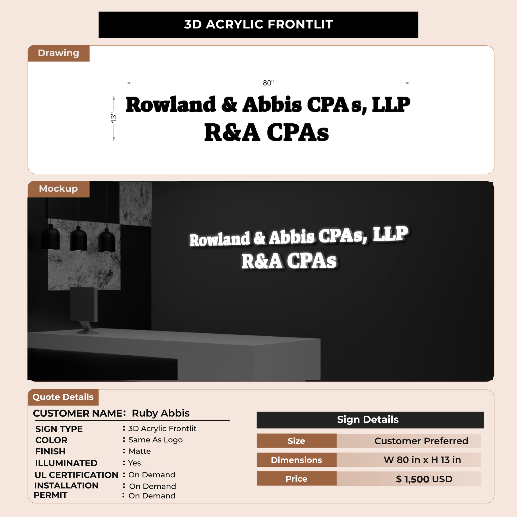 Enhance your business presence with our expertly crafted signage, made from top-quality material, to ensure longevity and durability. Fully customizable to reflect your unique brand identity, our signage offers a professional and polished appearance. Easy to install and low maintenance, it’s the perfect addition to any business setting. Trust us to deliver a product that not only meets but exceeds your expectations.