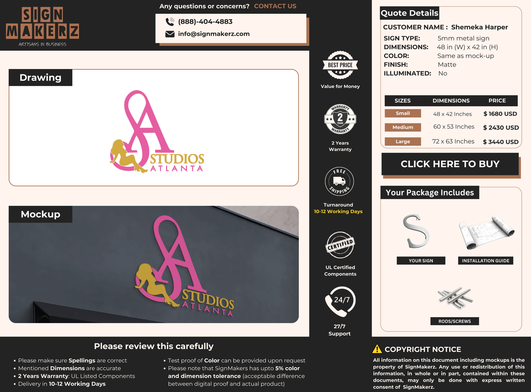 Crafted with premium material, this signage will elevate your business image, precisely mirroring your logo for a professional look.