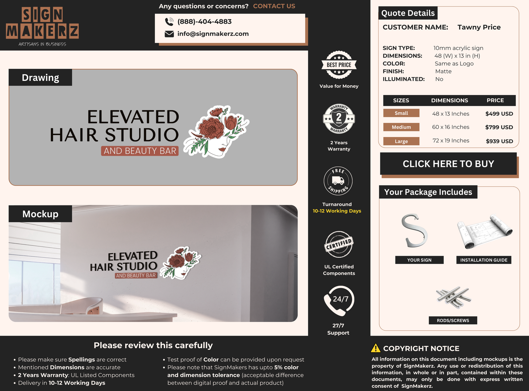 Crafted with premium material, this signage will elevate your business image, precisely mirroring your logo for a professional look.