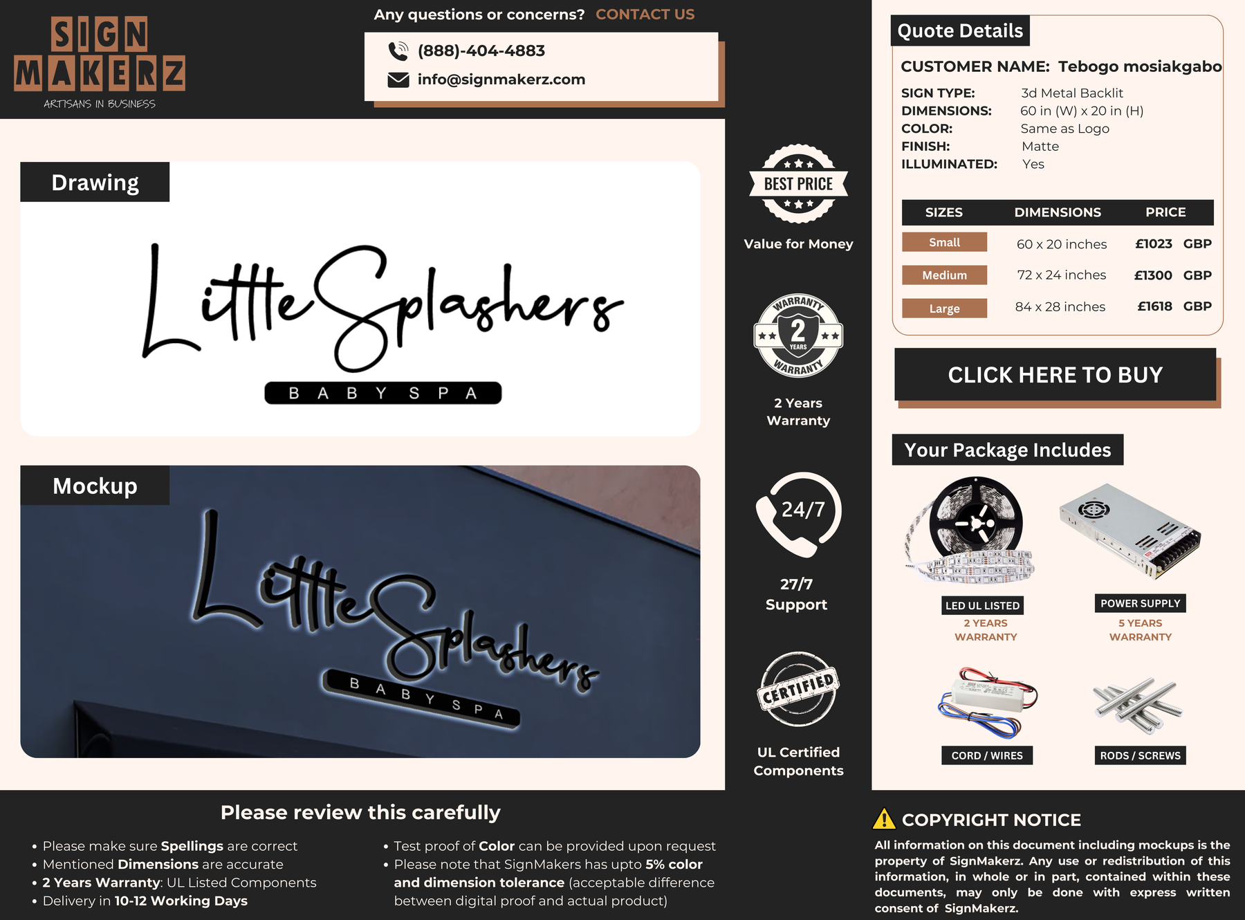 Crafted with premium material, this signage will elevate your business image, precisely mirroring your logo for a professional look.