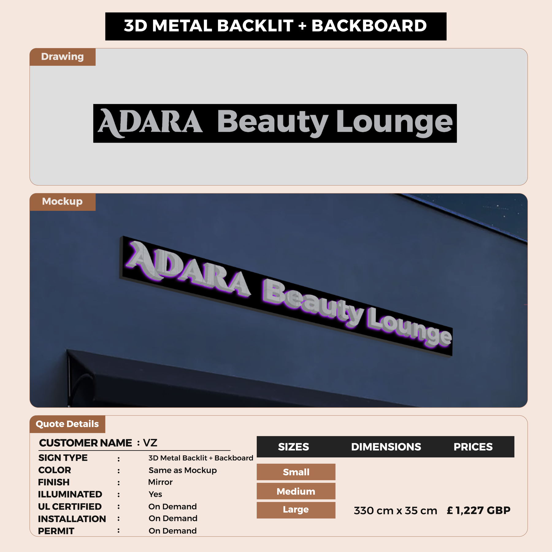 Crafted with premium material, this signage will elevate your business image, precisely mirroring your logo for a professional look.