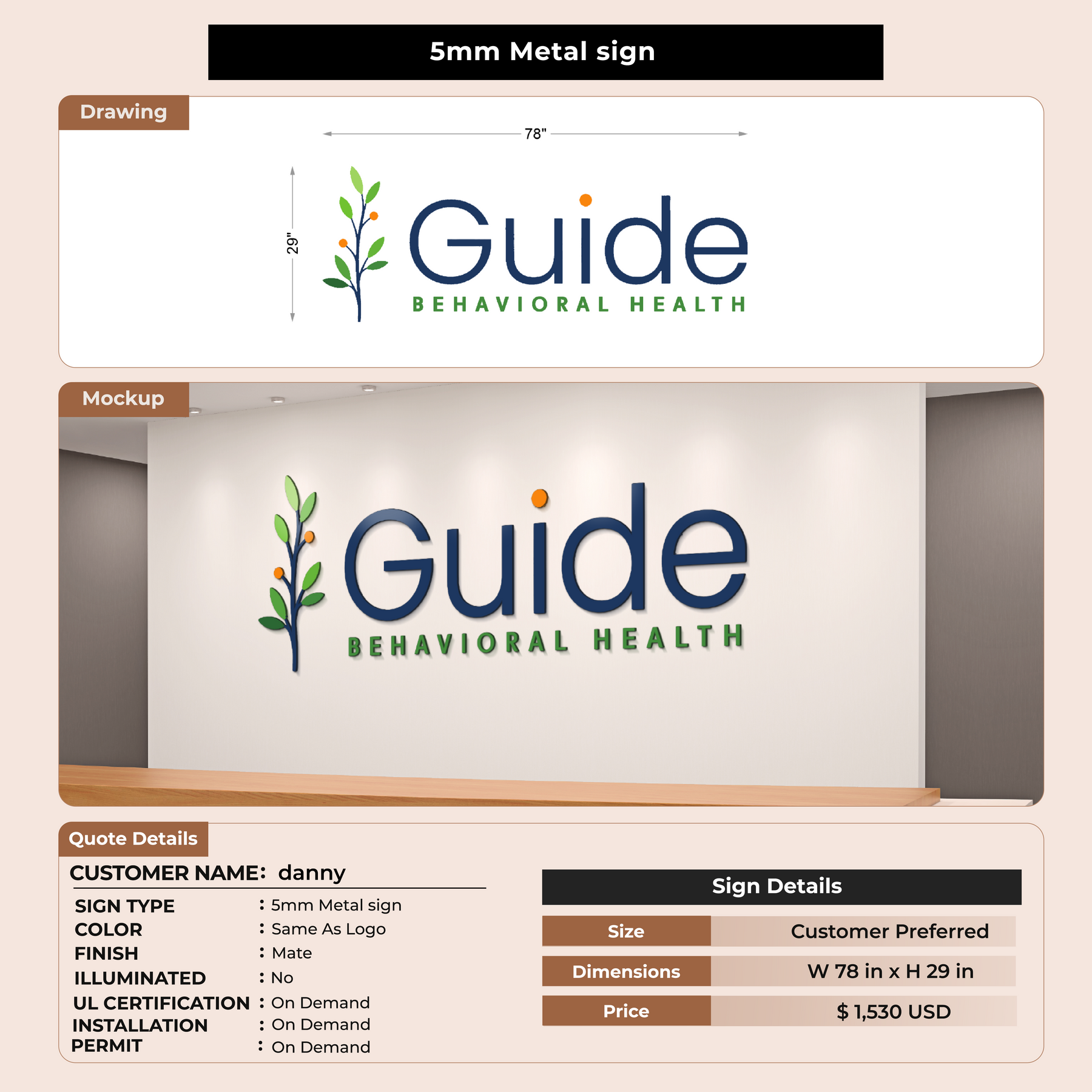 5mm Metal sign for danny