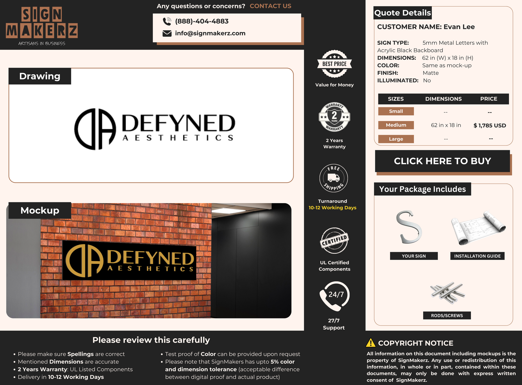 Enhance your business presence with our expertly crafted signage, made from top-quality material, to ensure longevity and durability. Fully customizable to reflect your unique brand identity, our signage offers a professional and polished appearance. Easy to install and low maintenance, it’s the perfect addition to any business setting. Trust us to deliver a product that not only meets but exceeds your expectations.