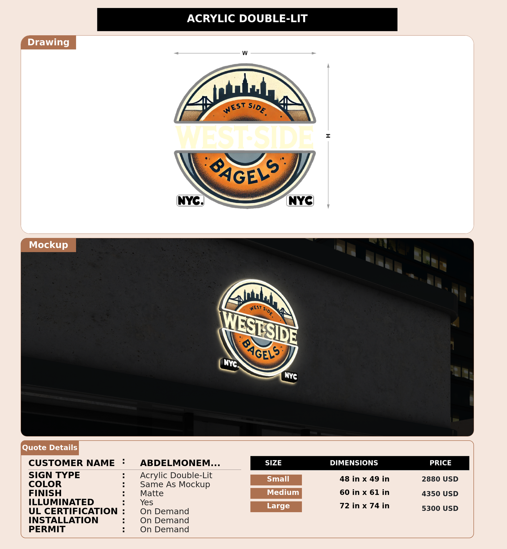 Crafted with premium material, this signage will elevate your business image, precisely mirroring your logo for a professional look.