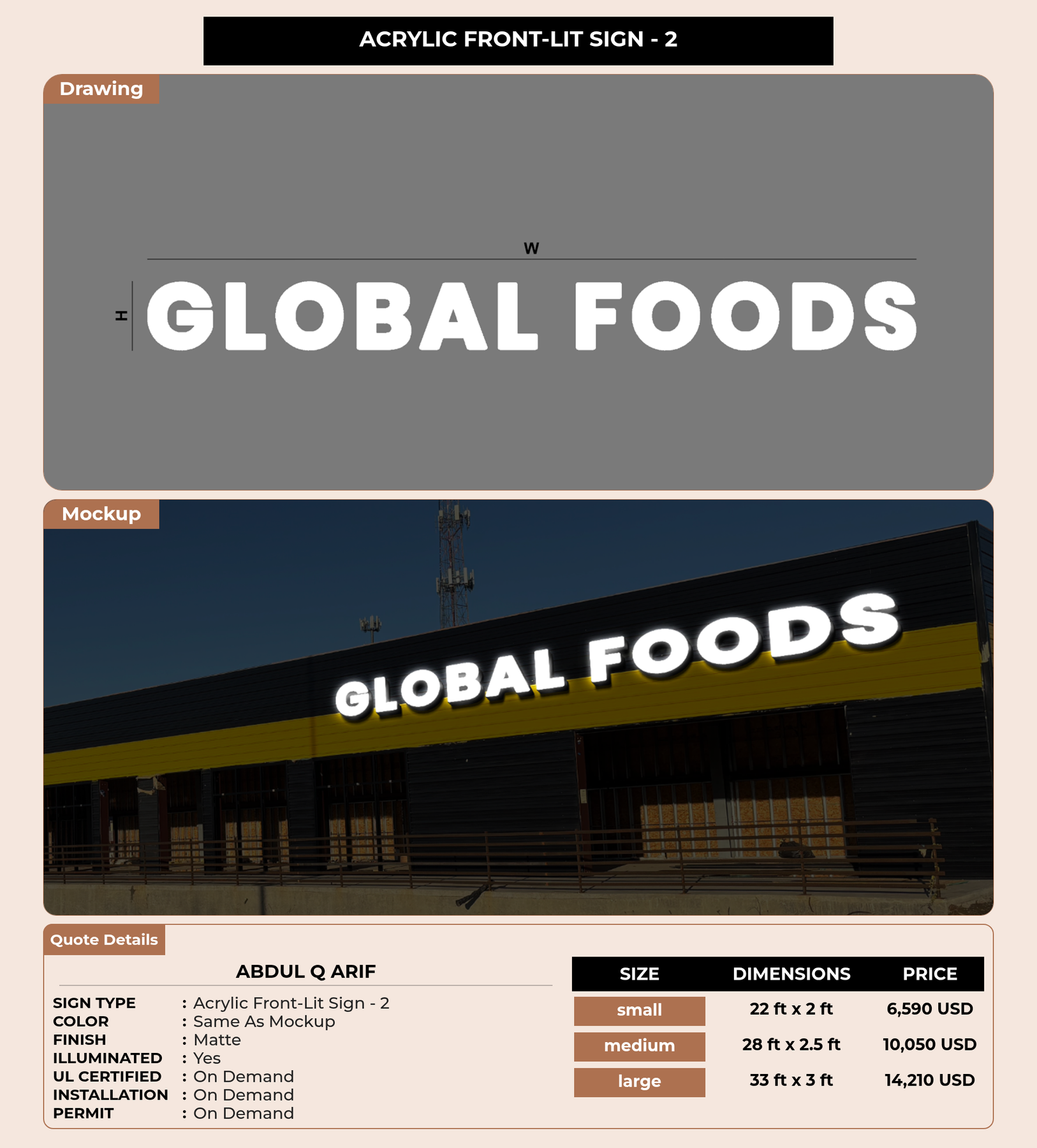 Eye-catching custom 3D sign for Abdul Q Arif