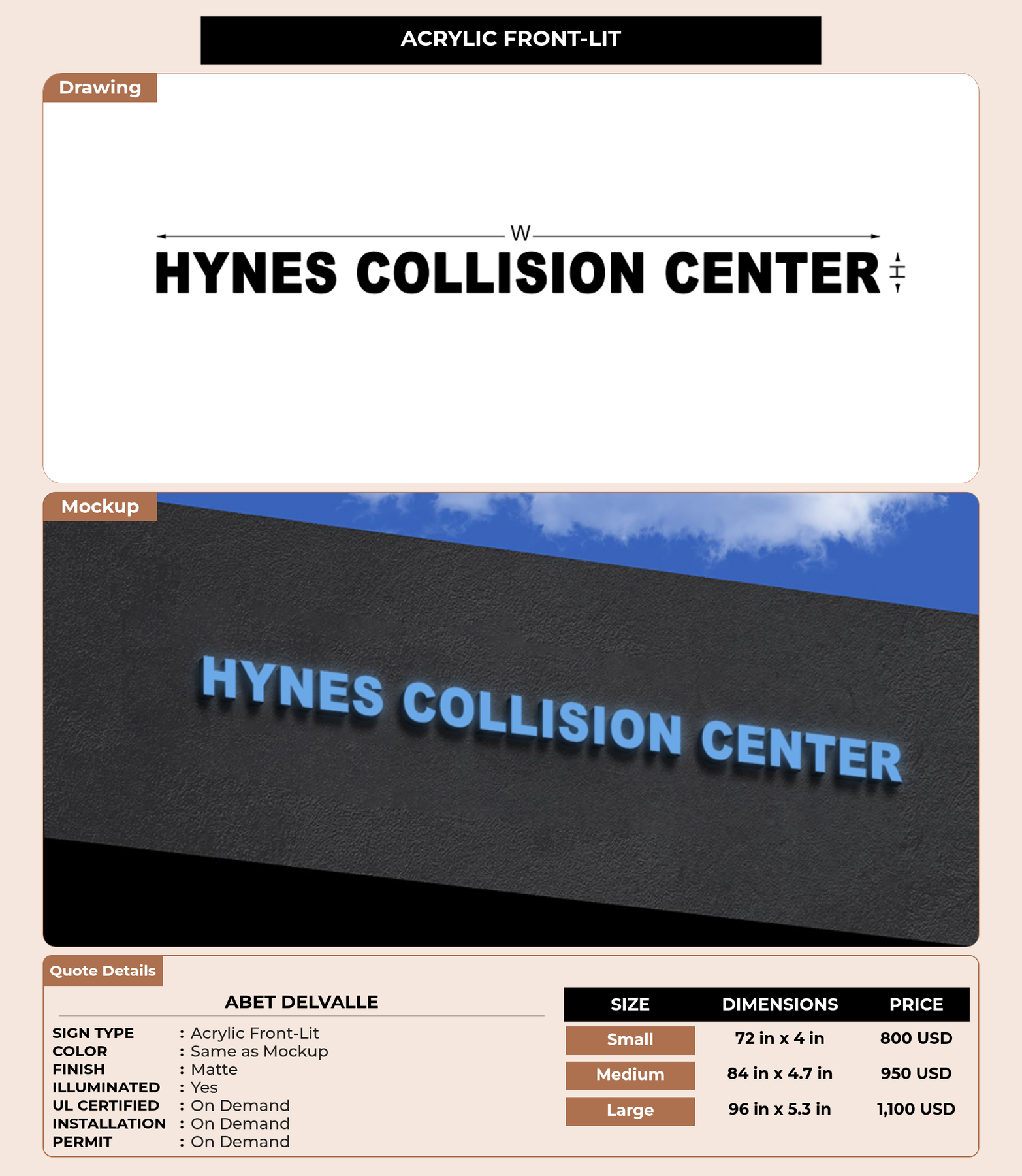 Enhance your business presence with our expertly crafted signage, made from top-quality material, to ensure longevity and durability. Fully customizable to reflect your unique brand identity, our signage offers a professional and polished appearance. Easy to install and low maintenance, it’s the perfect addition to any business setting. Trust us to deliver a product that not only meets but exceeds your expectations.