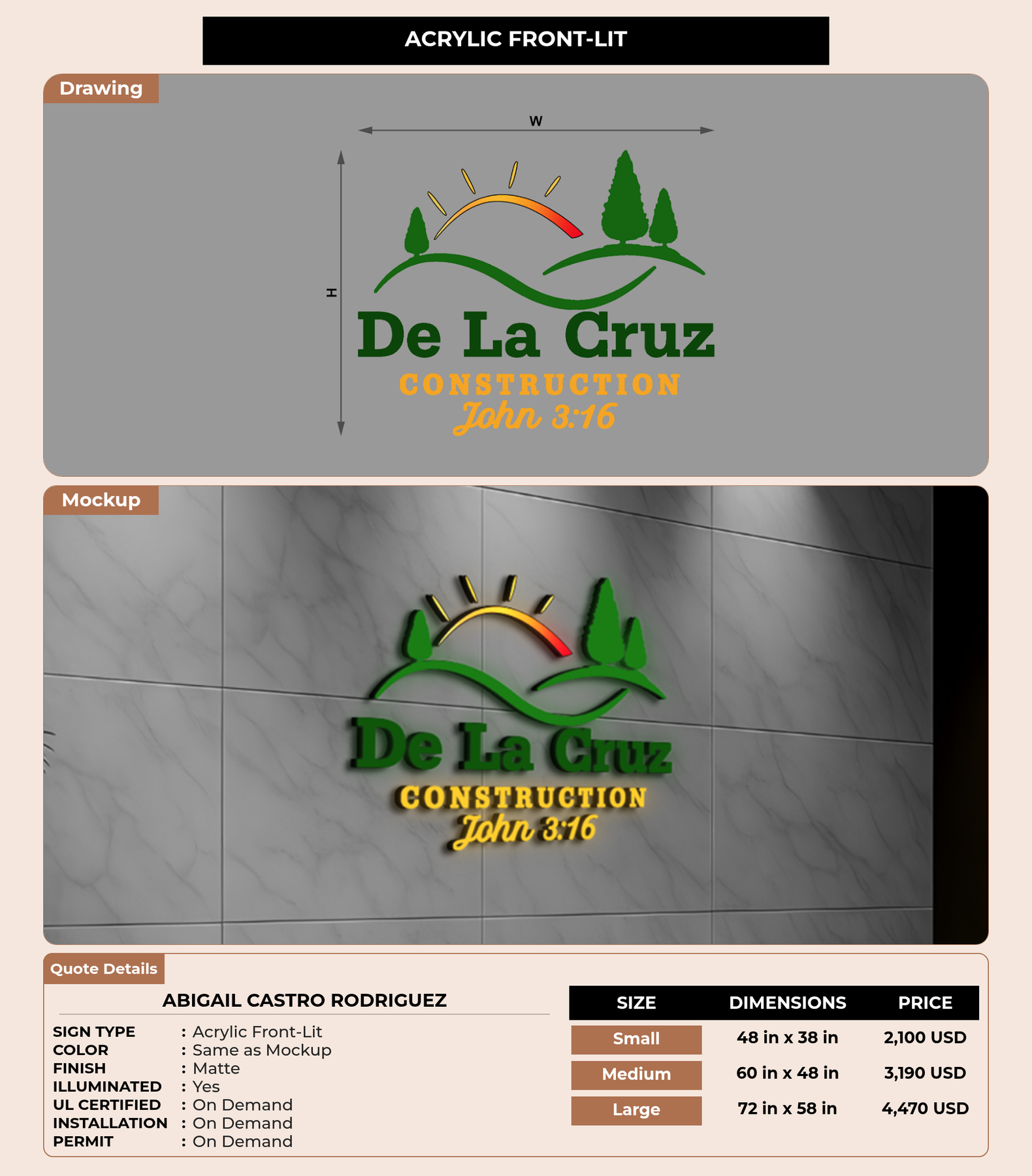 Crafted with premium material, this signage will elevate your business image, precisely mirroring your logo for a professional look.