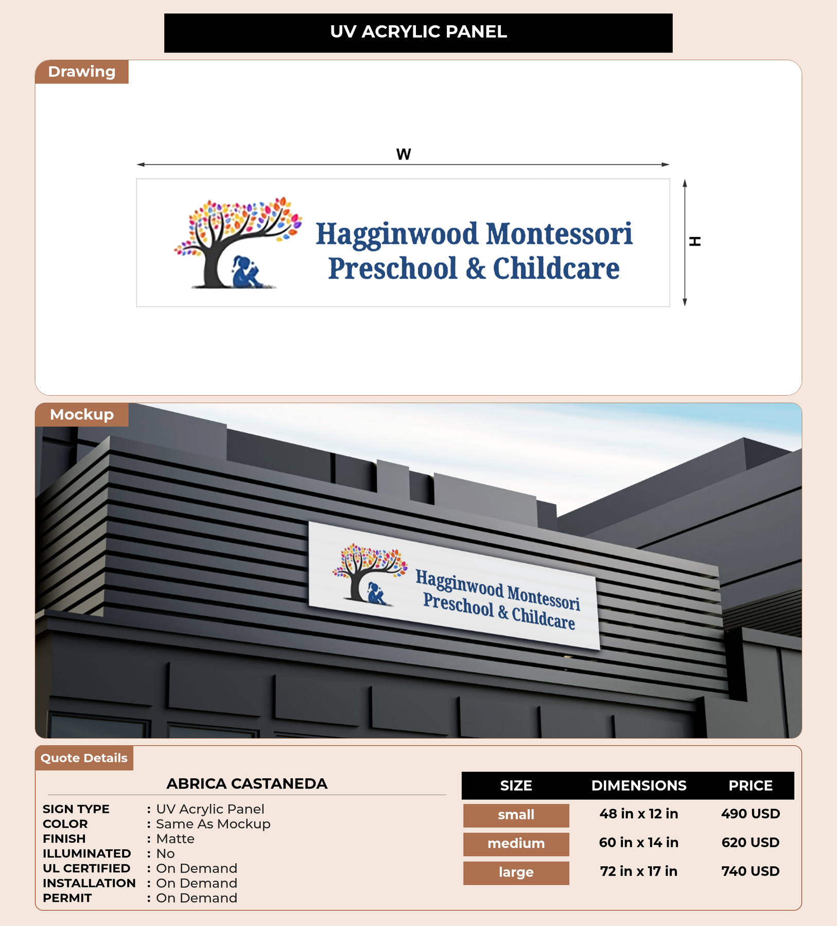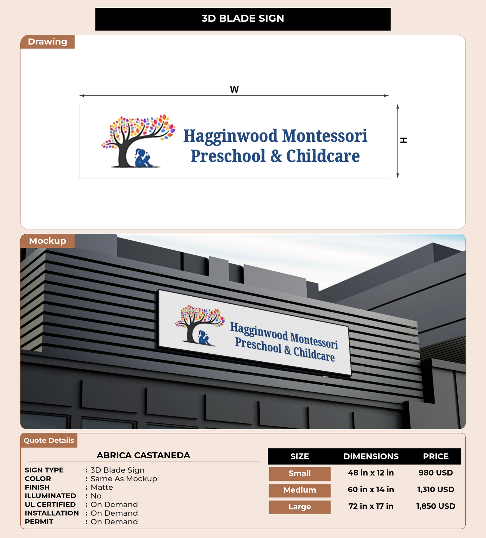 Eye-catching custom 3D sign for Abrica Castaneda