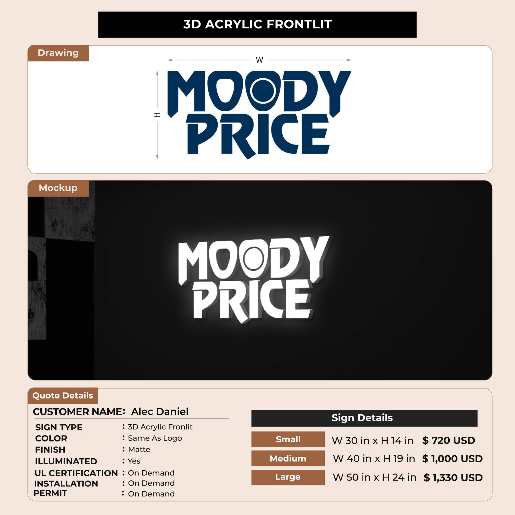 Eye-catching custom 3D sign for Alec Daniel