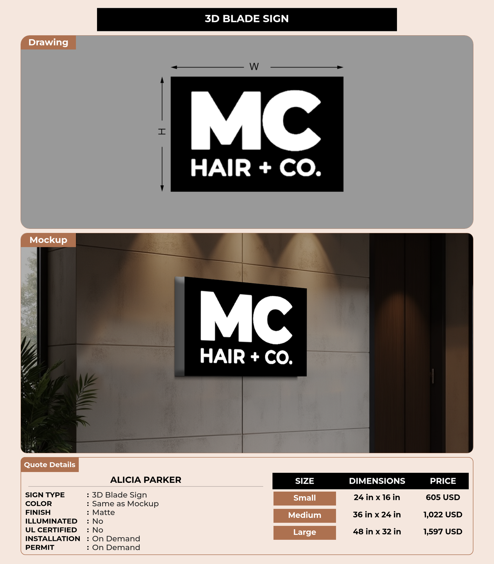 Enhance your business presence with our expertly crafted signage, made from top-quality material, to ensure longevity and durability. Fully customizable to reflect your unique brand identity, our signage offers a professional and polished appearance. Easy to install and low maintenance, it’s the perfect addition to any business setting. Trust us to deliver a product that not only meets but exceeds your expectations.