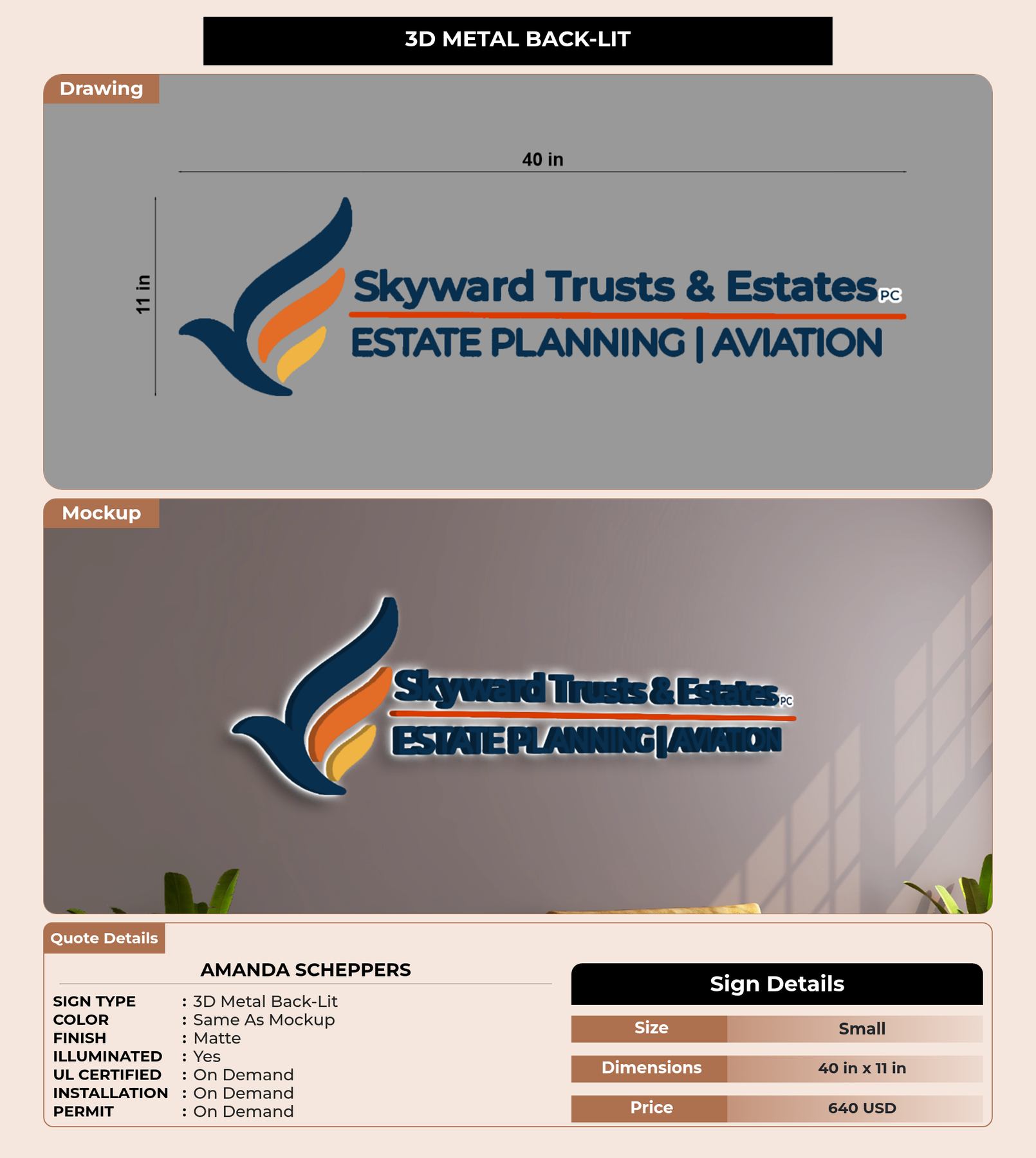 Eye-catching custom 3D sign for amanda scheppers