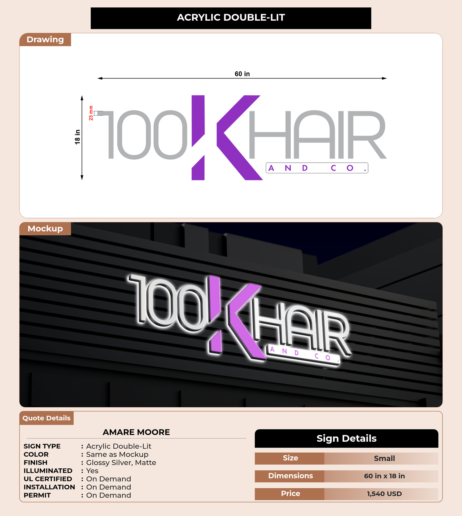 Enhance your business presence with our expertly crafted signage, made from top-quality material, to ensure longevity and durability. Fully customizable to reflect your unique brand identity, our signage offers a professional and polished appearance. Easy to install and low maintenance, it’s the perfect addition to any business setting. Trust us to deliver a product that not only meets but exceeds your expectations.