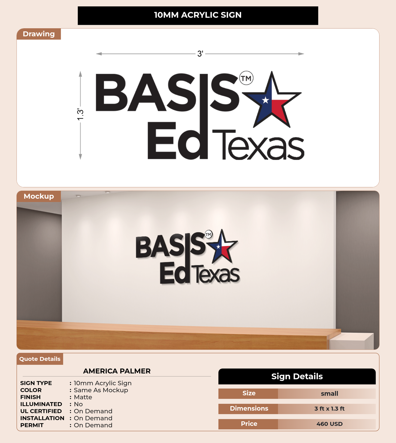 Crafted with premium material, this signage will elevate your business image, precisely mirroring your logo for a professional look.