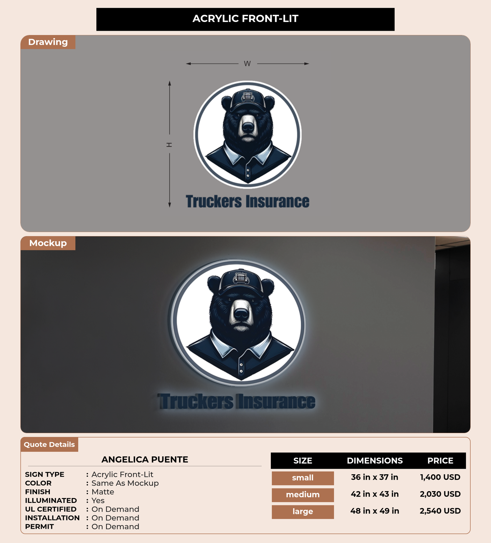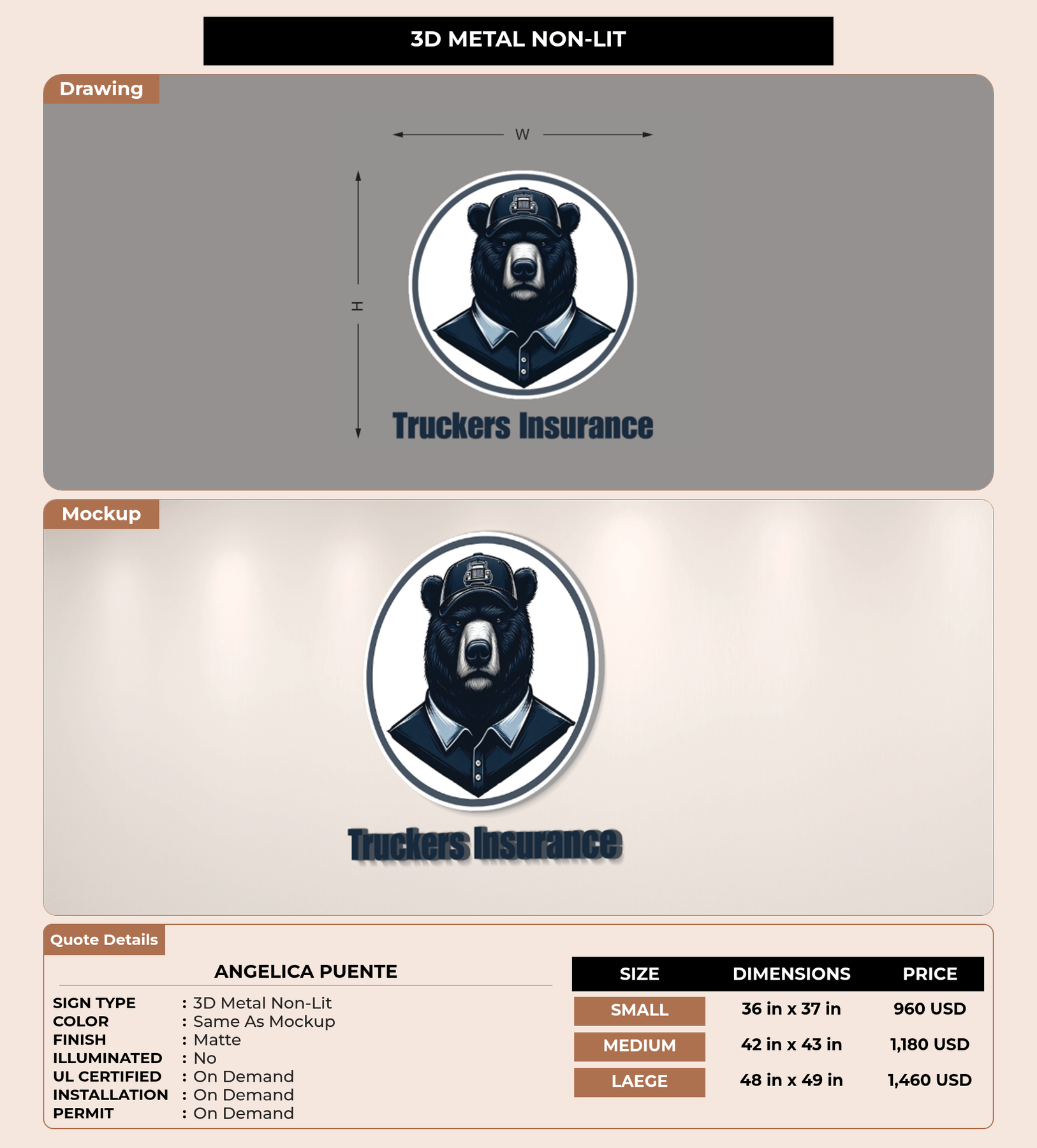Eye-catching custom 3D sign for Angelica Puente