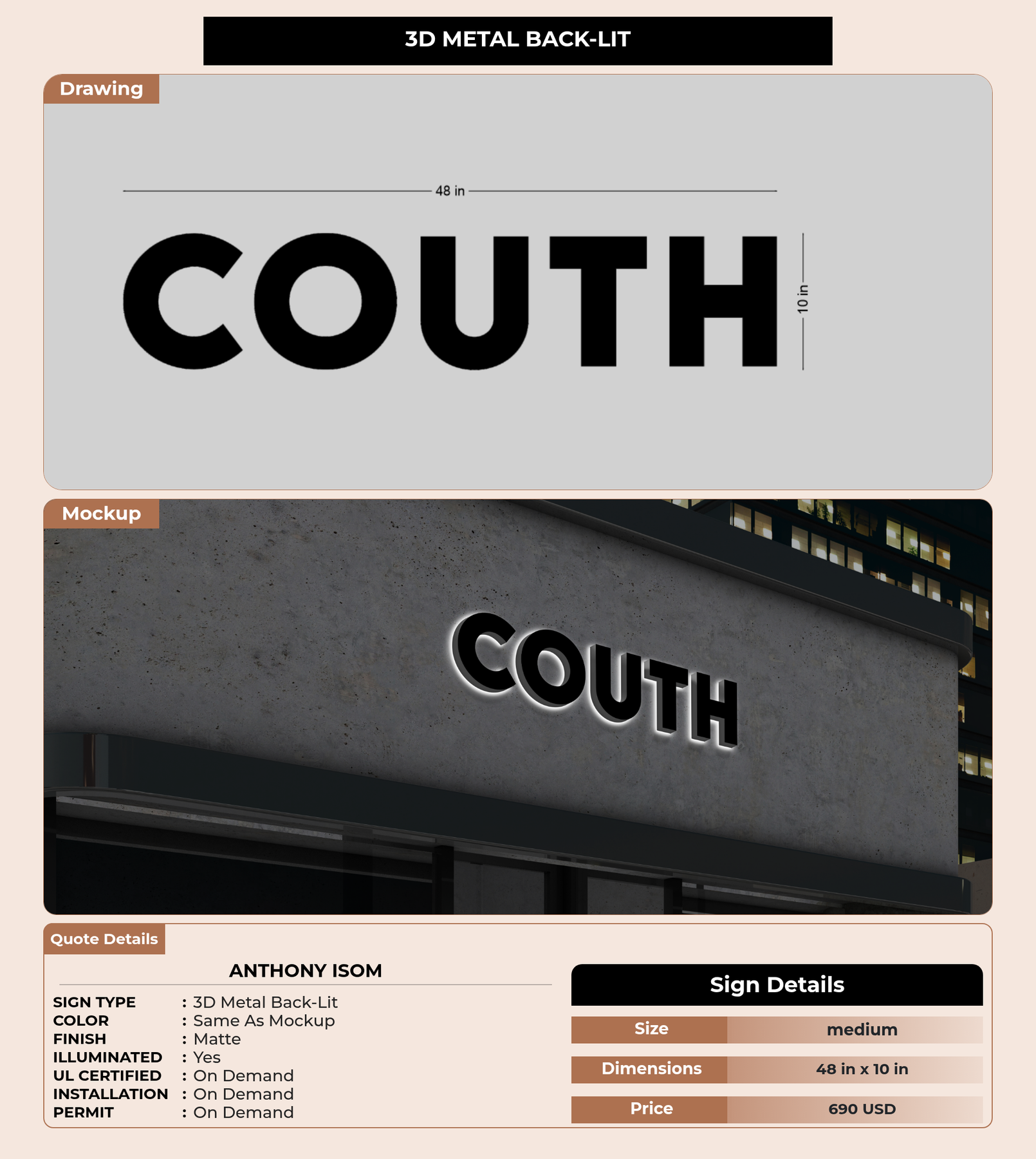 Eye-catching custom 3D sign for Anthony Isom