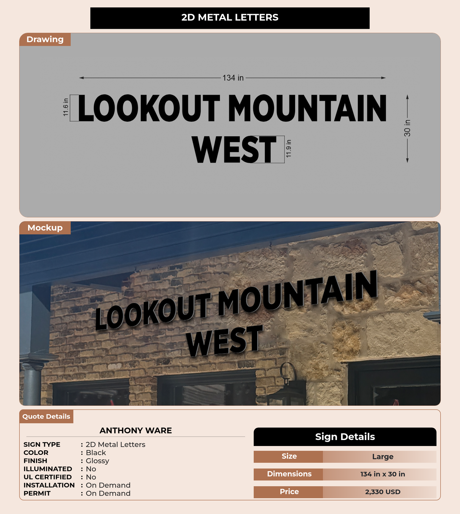Enhance your business presence with our expertly crafted signage, made from top-quality material, to ensure longevity and durability. Fully customizable to reflect your unique brand identity, our signage offers a professional and polished appearance. Easy to install and low maintenance, it’s the perfect addition to any business setting. Trust us to deliver a product that not only meets but exceeds your expectations.