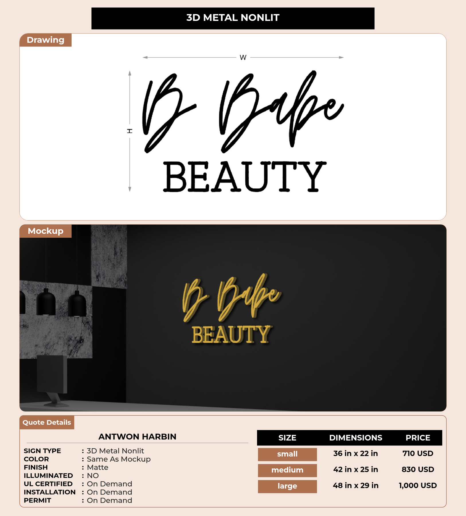 Enhance your business presence with our expertly crafted signage, made from top-quality material, to ensure longevity and durability. Fully customizable to reflect your unique brand identity, our signage offers a professional and polished appearance. Easy to install and low maintenance, it’s the perfect addition to any business setting. Trust us to deliver a product that not only meets but exceeds your expectations.