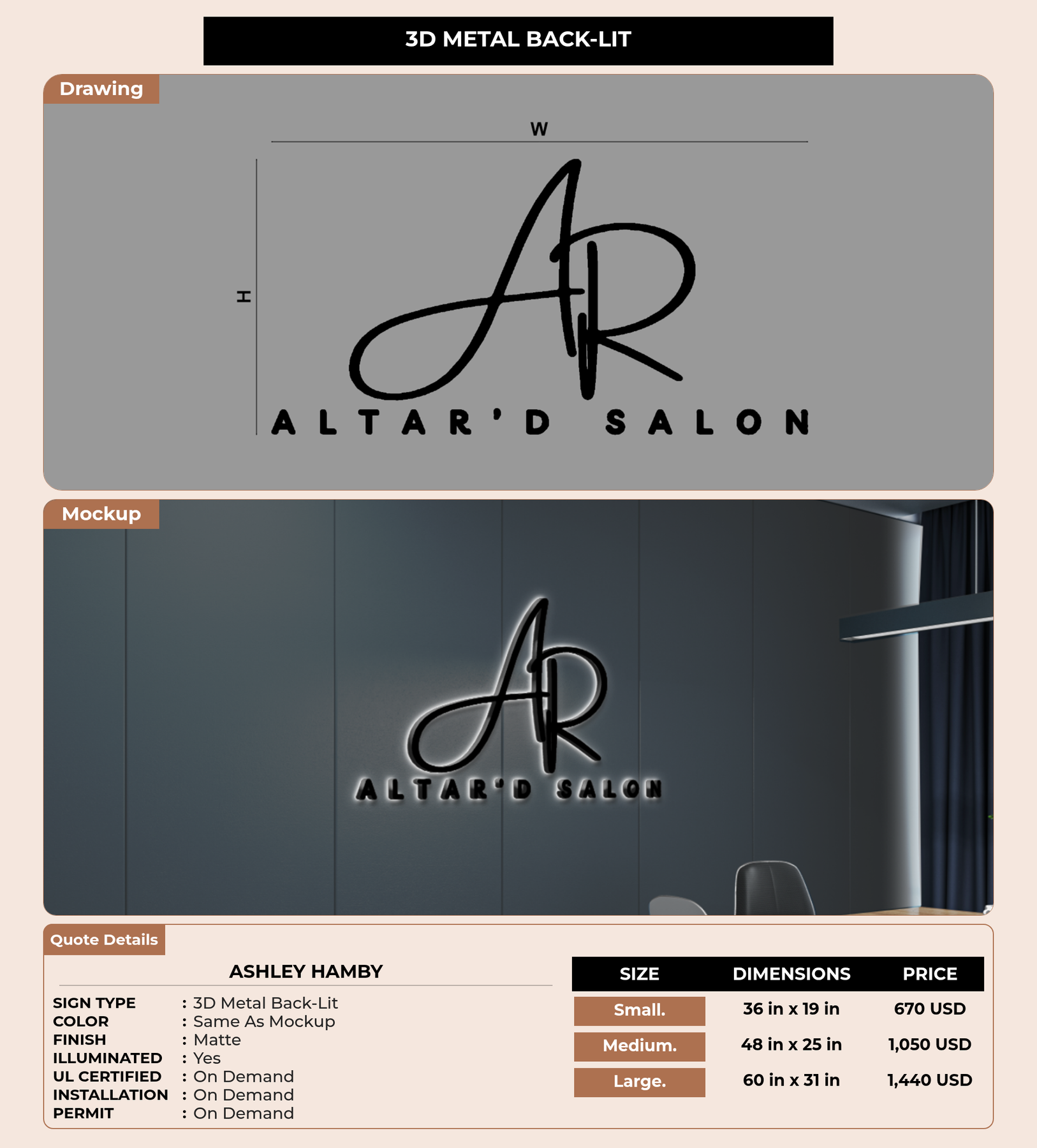 Crafted with premium material, this signage will elevate your business image, precisely mirroring your logo for a professional look.