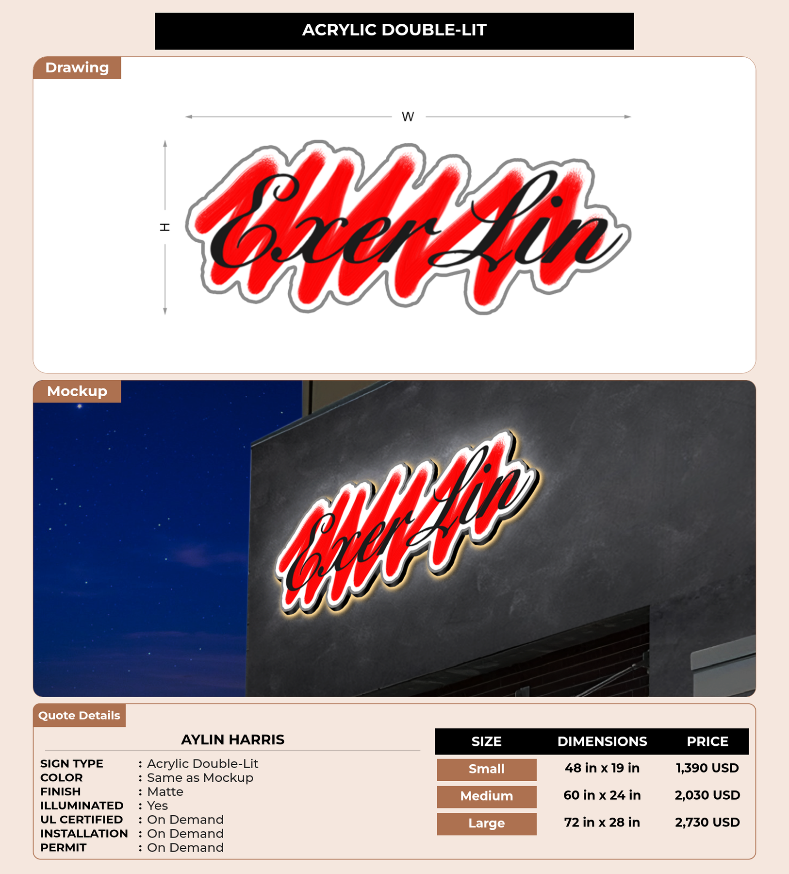 Enhance your business presence with our expertly crafted signage, made from top-quality material, to ensure longevity and durability. Fully customizable to reflect your unique brand identity, our signage offers a professional and polished appearance. Easy to install and low maintenance, it’s the perfect addition to any business setting. Trust us to deliver a product that not only meets but exceeds your expectations.