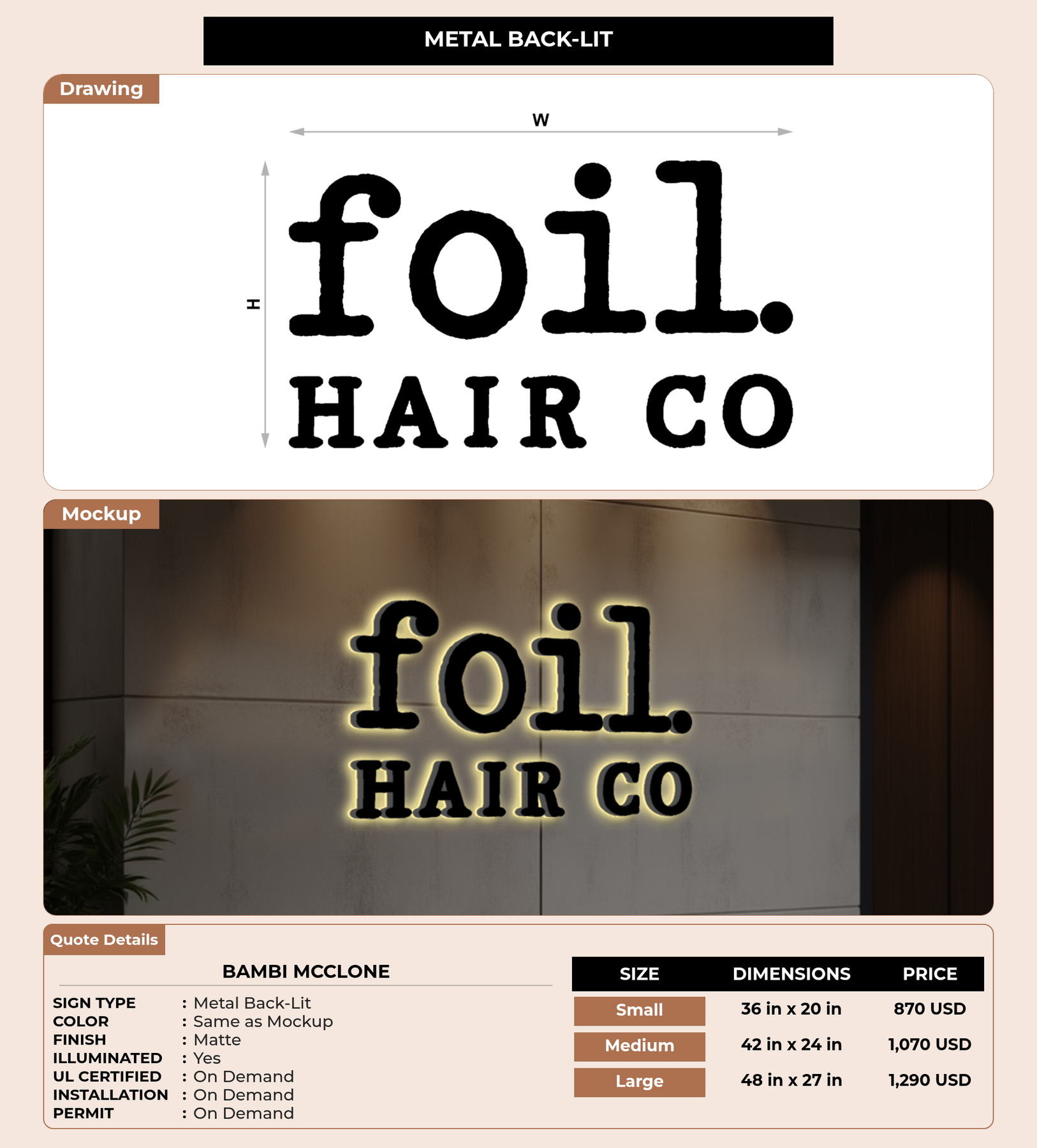 Crafted with premium material, this signage will elevate your business image, precisely mirroring your logo for a professional look.
