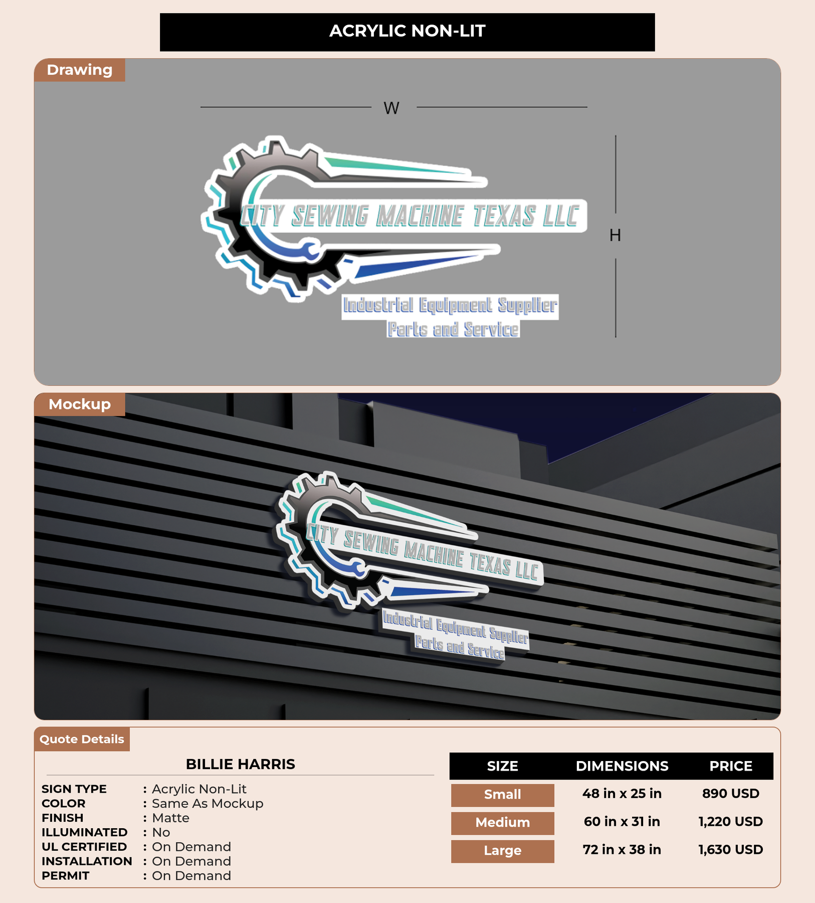 Enhance your business presence with our expertly crafted signage, made from top-quality material, to ensure longevity and durability. Fully customizable to reflect your unique brand identity, our signage offers a professional and polished appearance. Easy to install and low maintenance, it’s the perfect addition to any business setting. Trust us to deliver a product that not only meets but exceeds your expectations.