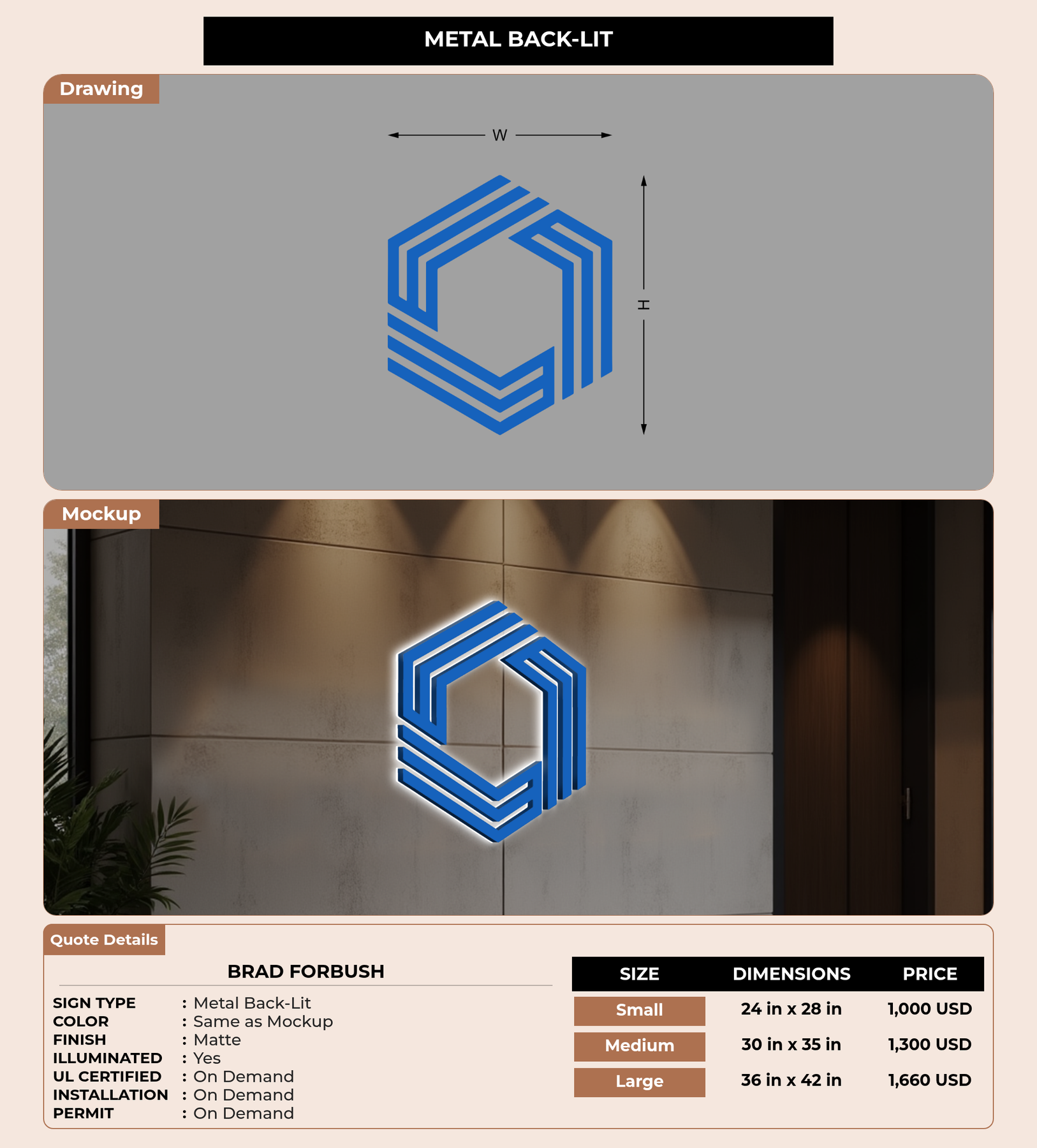 Enhance your business presence with our expertly crafted signage, made from top-quality material, to ensure longevity and durability. Fully customizable to reflect your unique brand identity, our signage offers a professional and polished appearance. Easy to install and low maintenance, it’s the perfect addition to any business setting. Trust us to deliver a product that not only meets but exceeds your expectations.