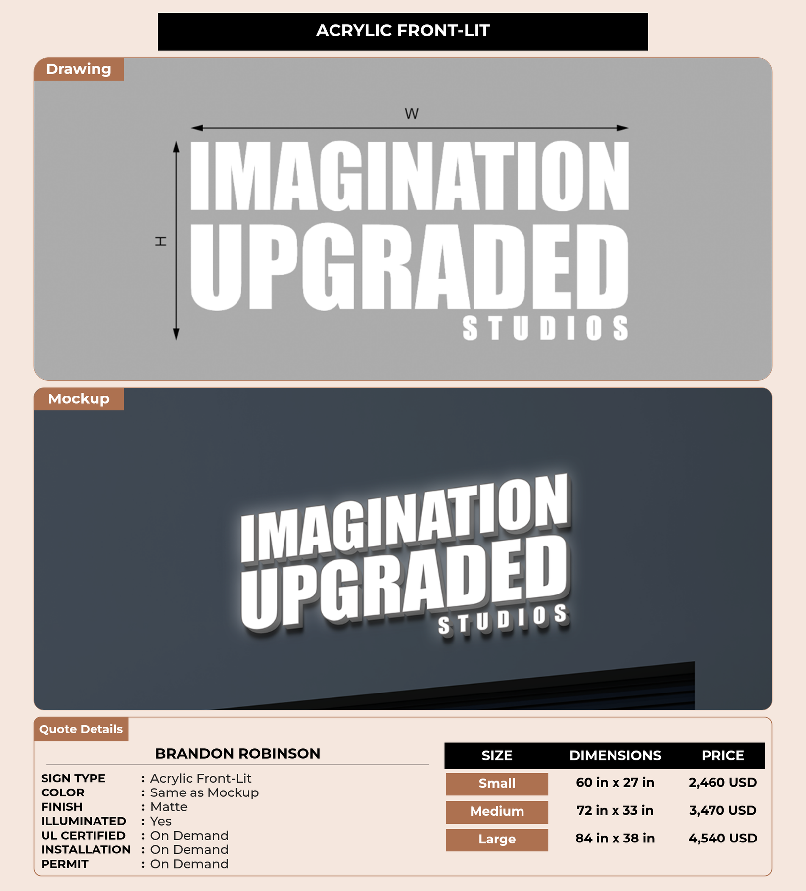 Enhance your business presence with our expertly crafted signage, made from top-quality material, to ensure longevity and durability. Fully customizable to reflect your unique brand identity, our signage offers a professional and polished appearance. Easy to install and low maintenance, it’s the perfect addition to any business setting. Trust us to deliver a product that not only meets but exceeds your expectations.
