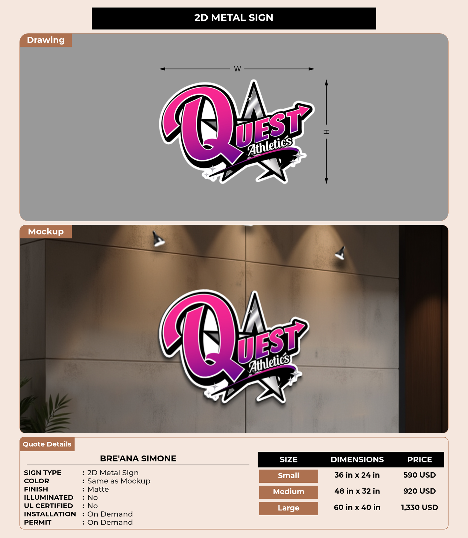Eye-catching custom 3D sign for Bre'Ana Simone