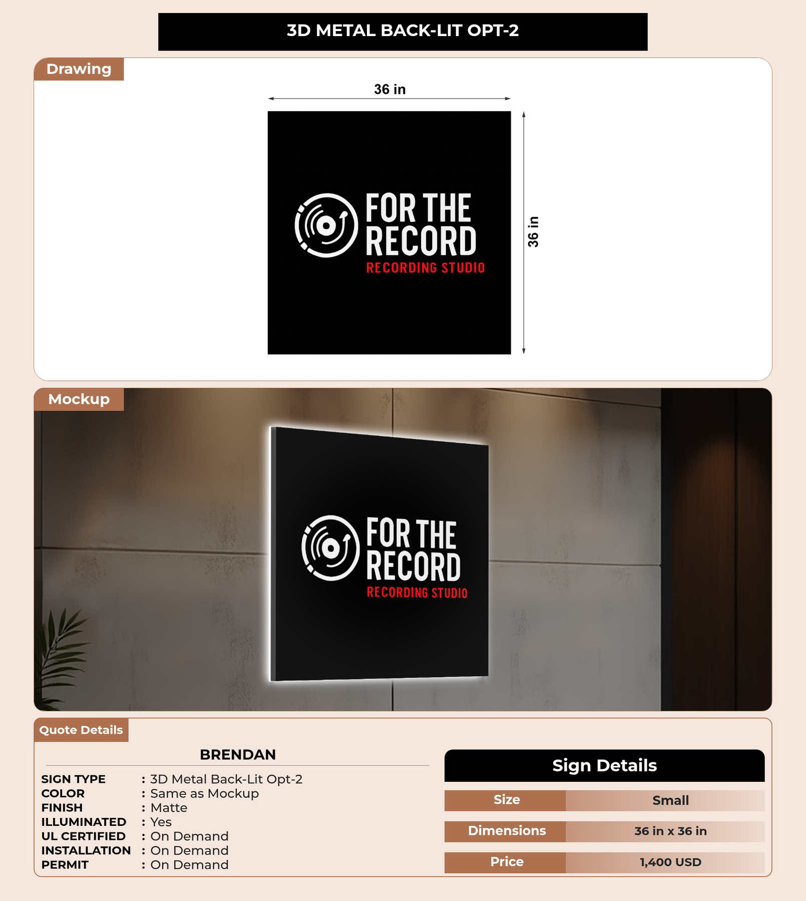 Crafted with premium material, this signage will elevate your business image, precisely mirroring your logo for a professional look.