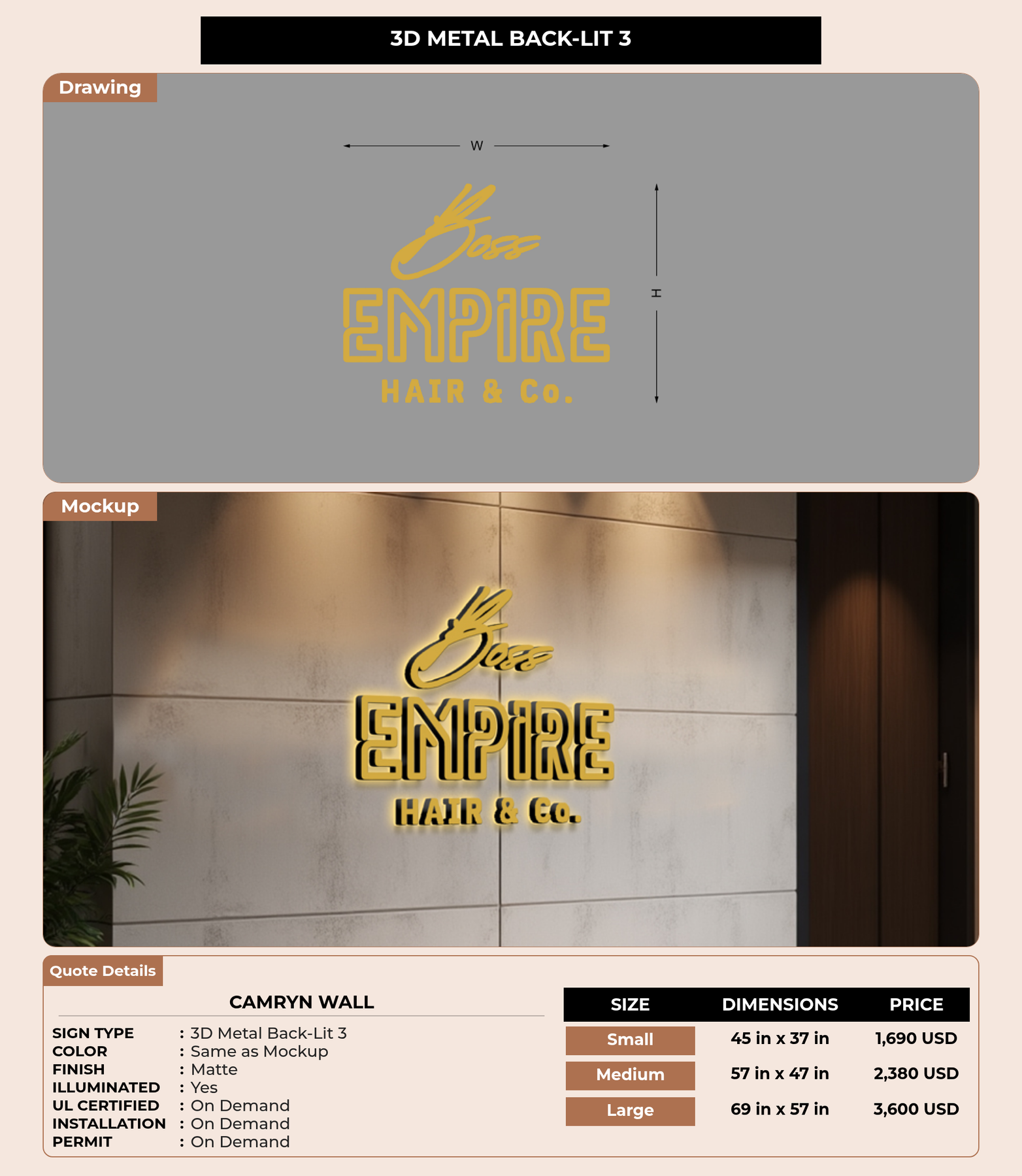 Crafted with premium material, this signage will elevate your business image, precisely mirroring your logo for a professional look.