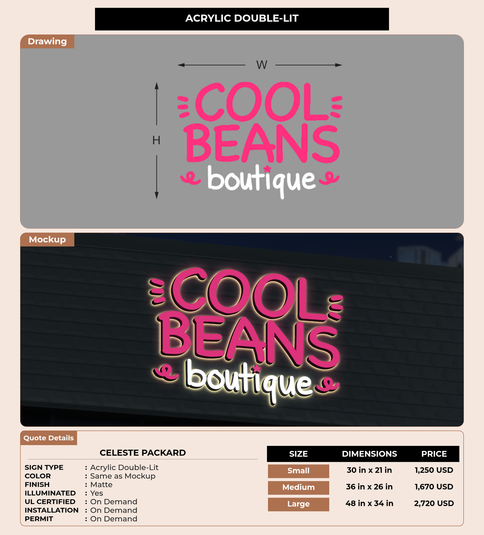 Enhance your business presence with our expertly crafted signage, made from top-quality material, to ensure longevity and durability. Fully customizable to reflect your unique brand identity, our signage offers a professional and polished appearance. Easy to install and low maintenance, it’s the perfect addition to any business setting. Trust us to deliver a product that not only meets but exceeds your expectations.