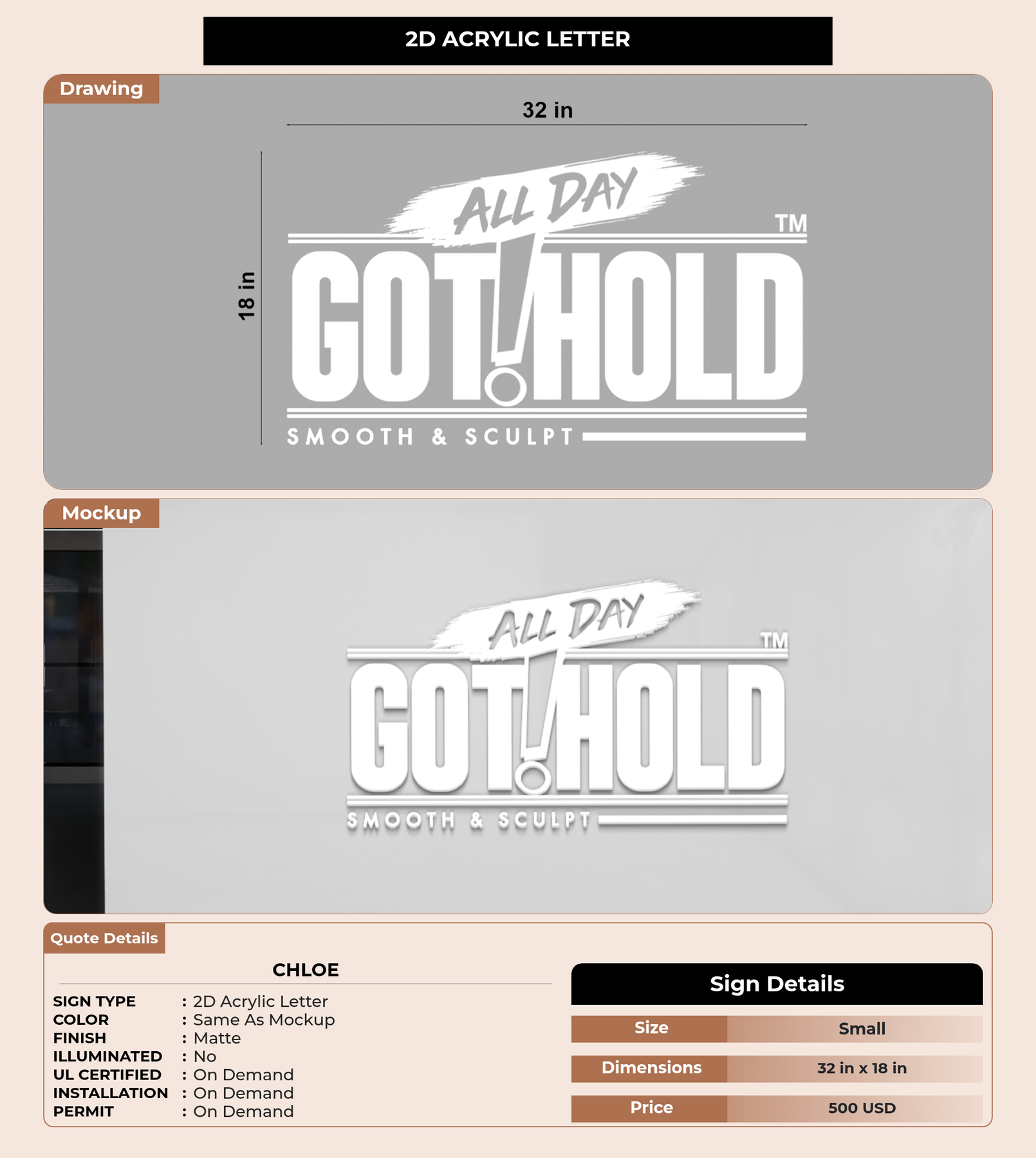 Crafted with premium material, this signage will elevate your business image, precisely mirroring your logo for a professional look.