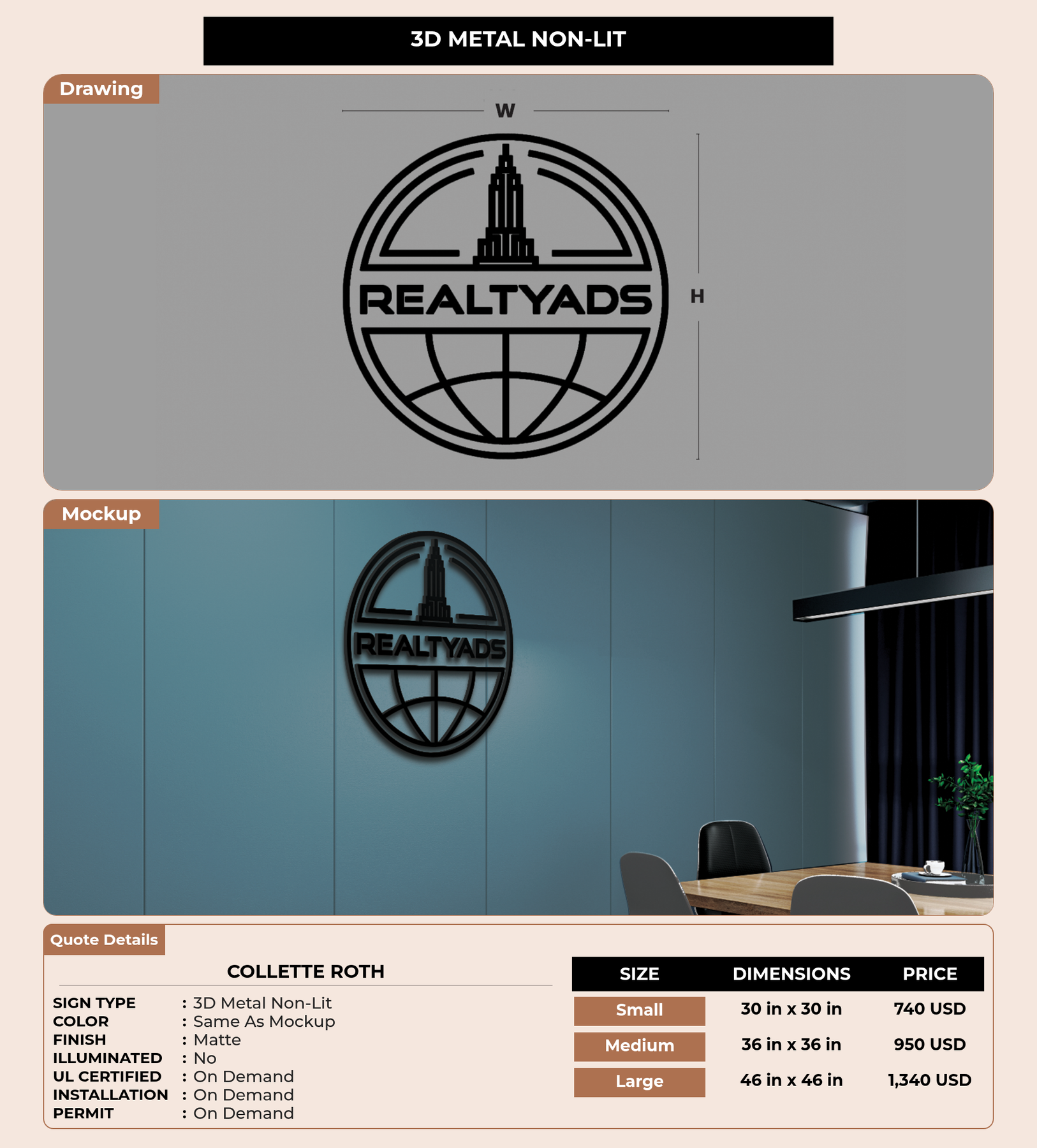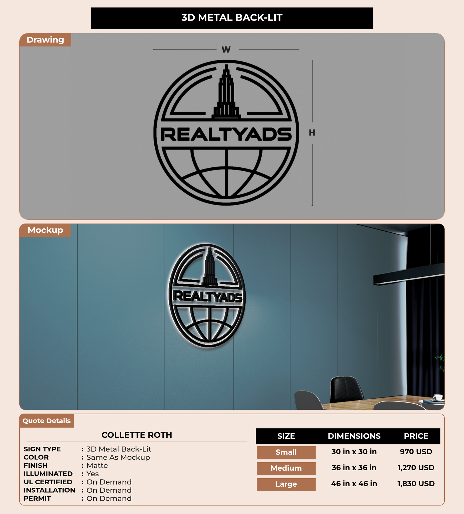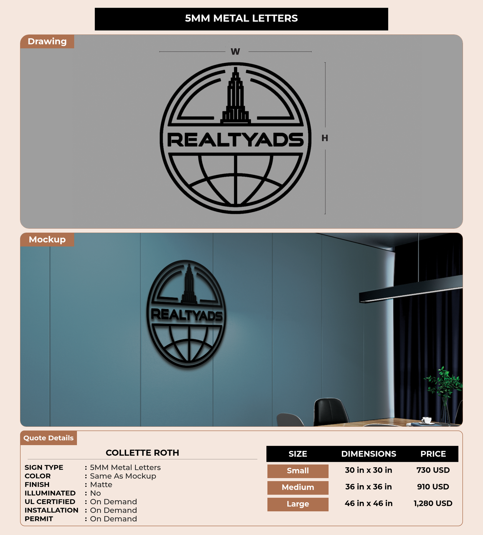 Eye-catching custom 3D sign for Collette Roth