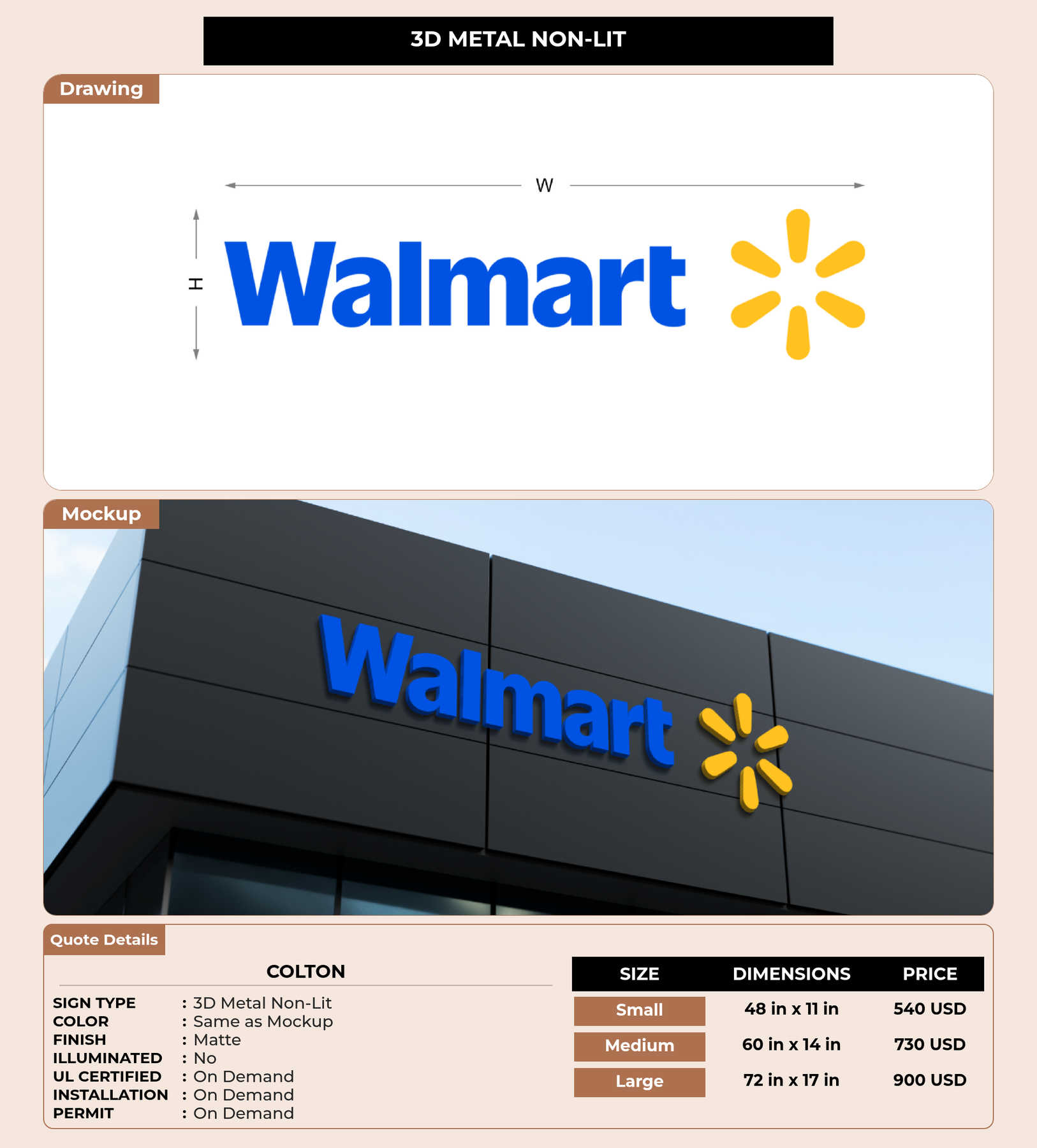 Installation services are available for an additional fee, depending on your location and the complexity of the signage.