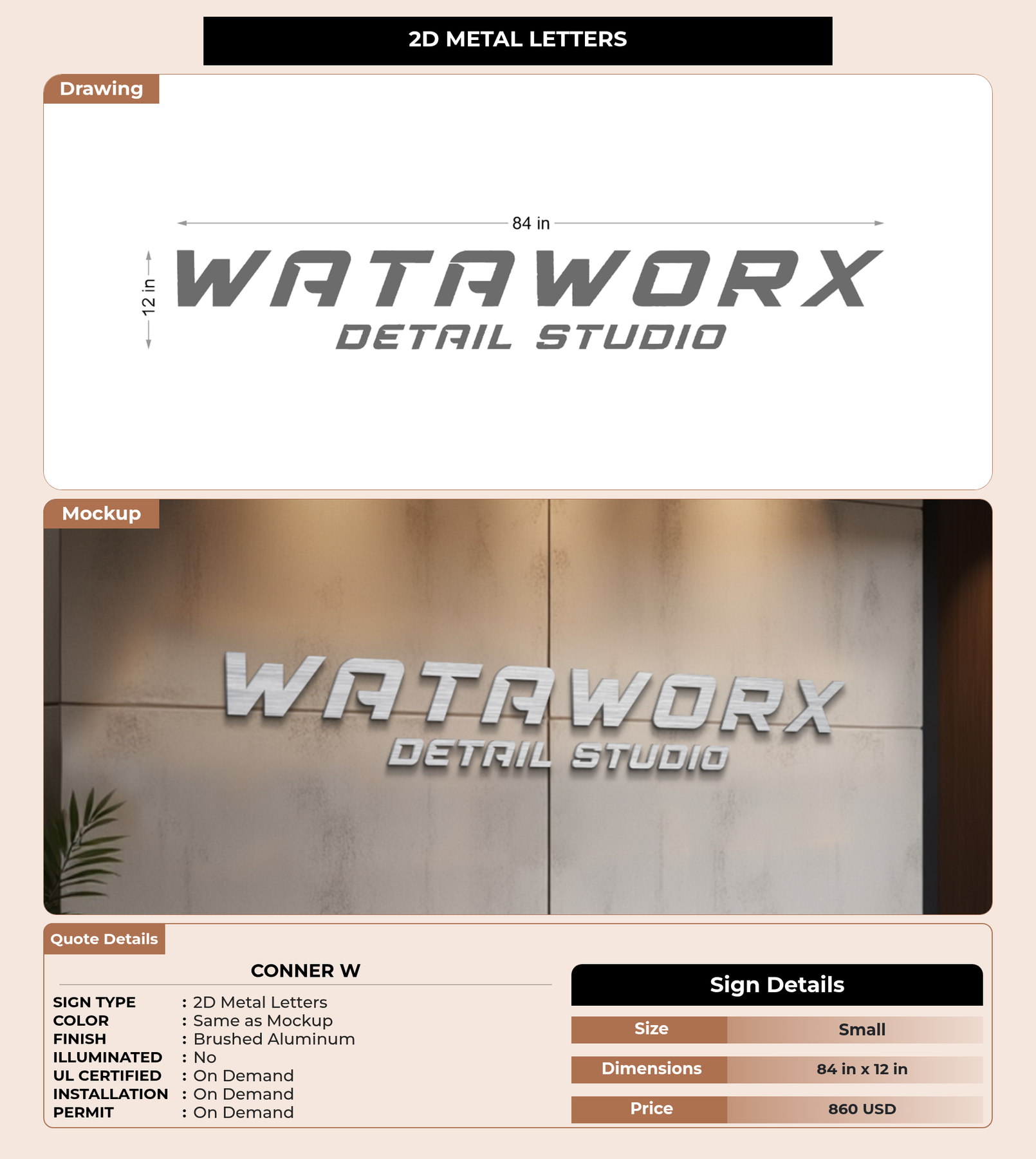 Crafted with premium material, this signage will elevate your business image, precisely mirroring your logo for a professional look.
