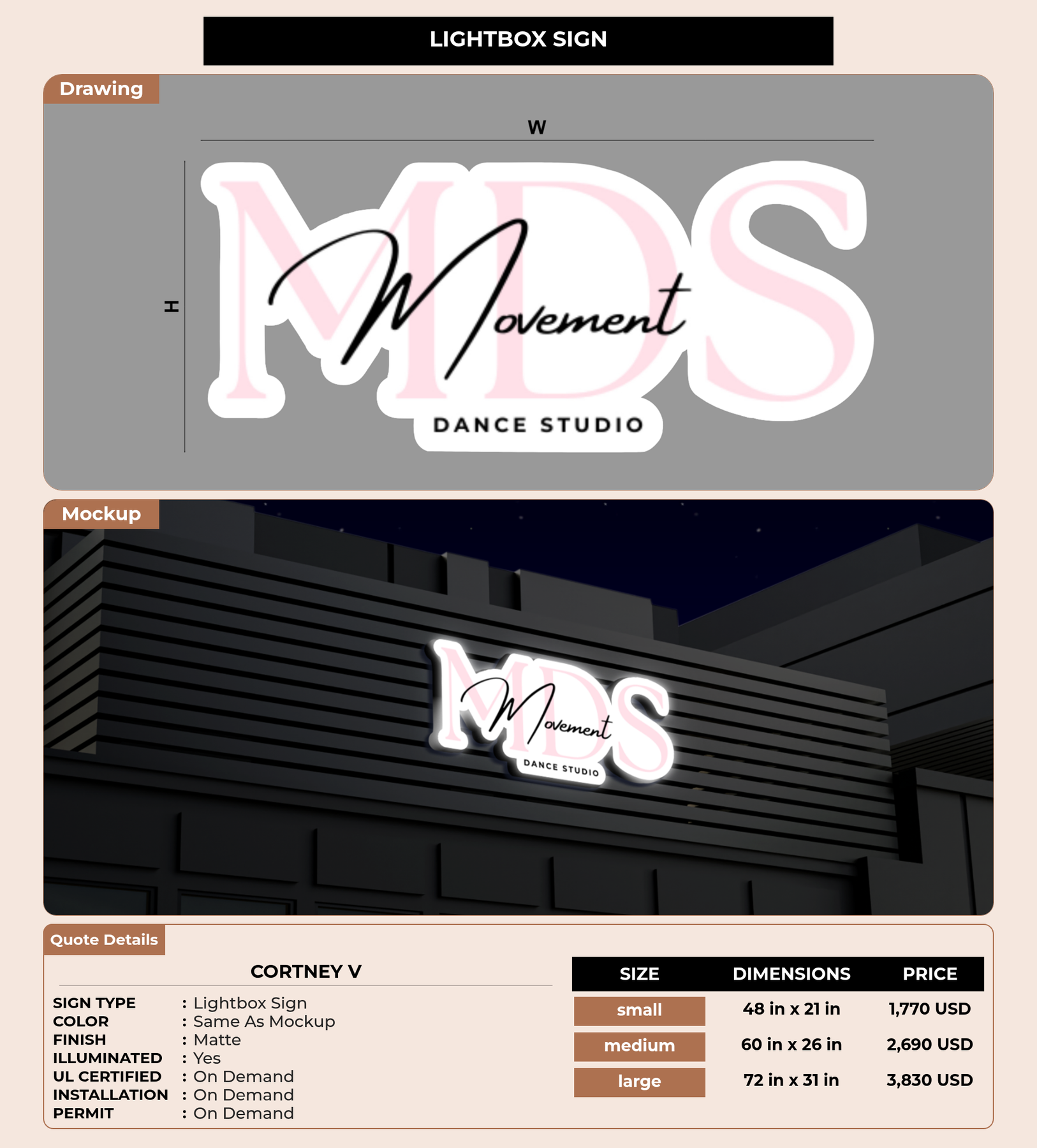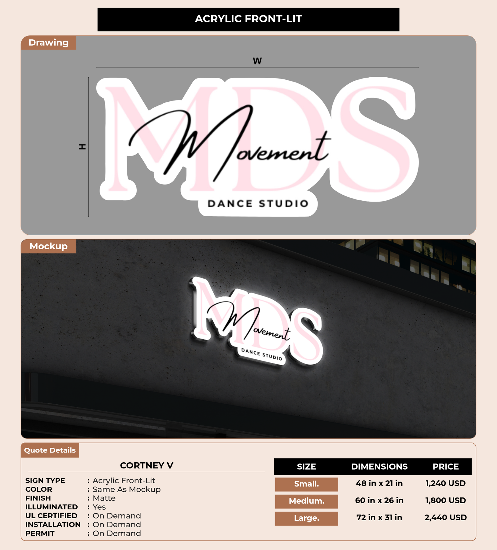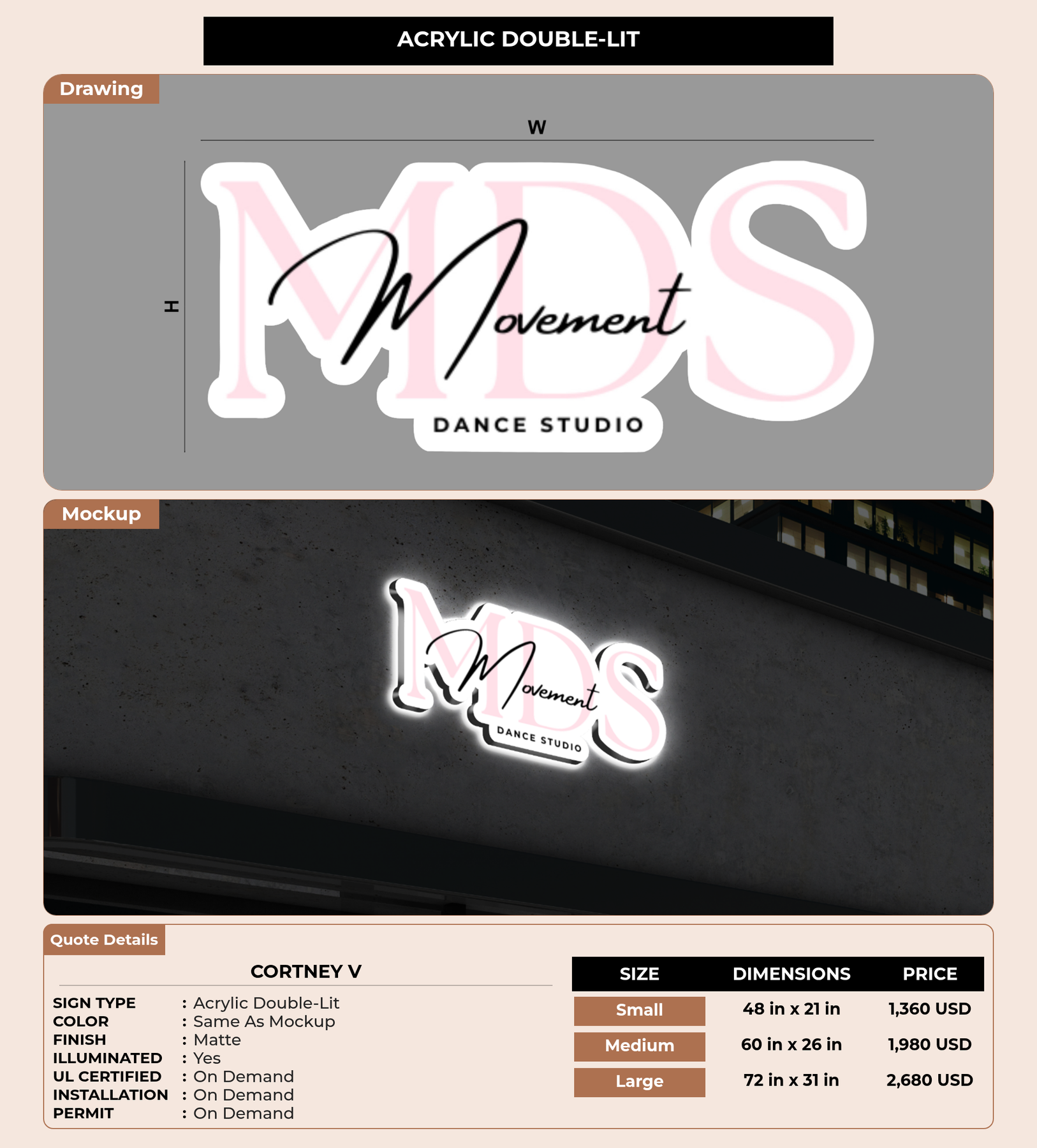 Eye-catching custom 3D sign for Cortney V