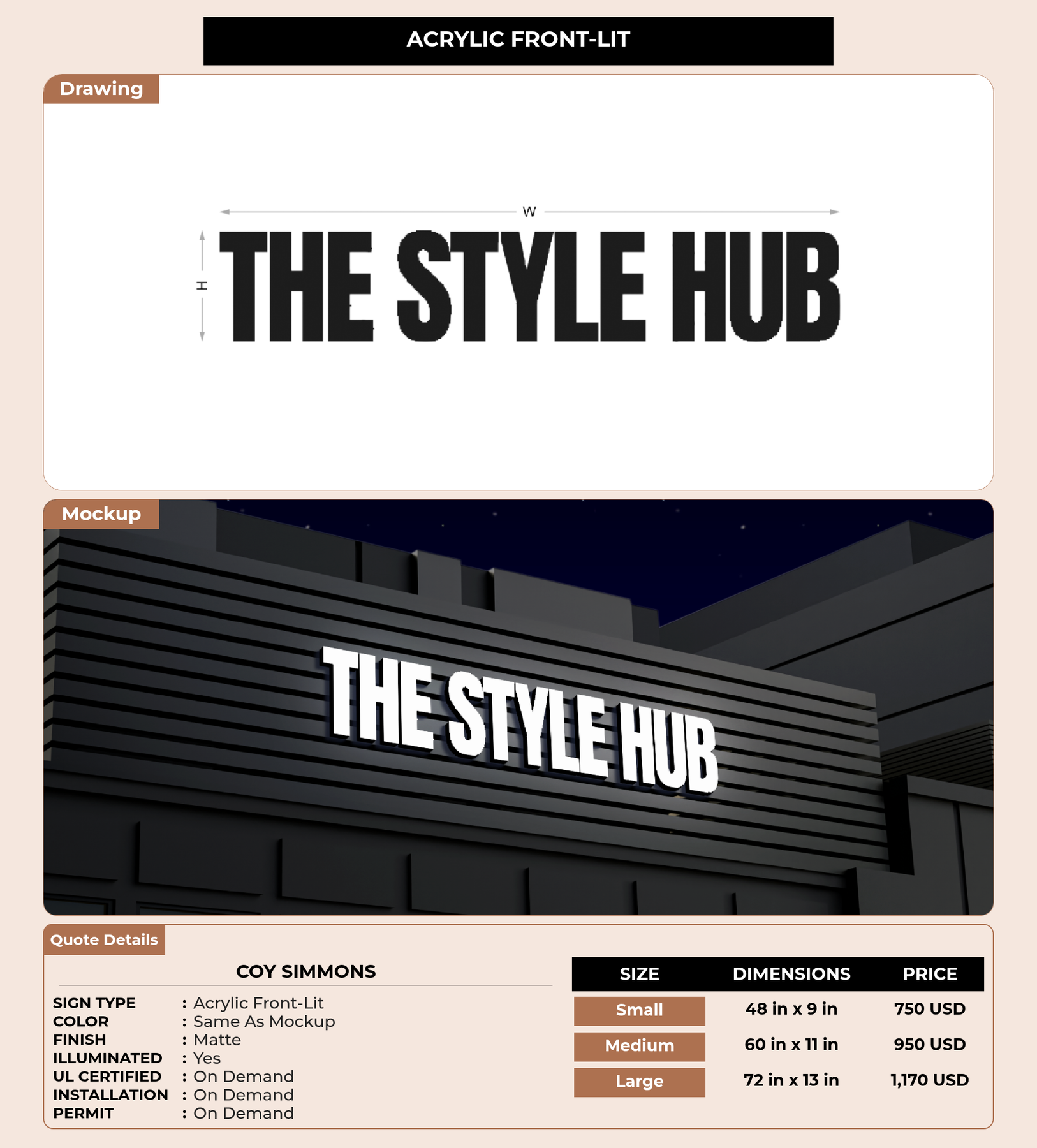 Enhance your business presence with our expertly crafted signage, made from top-quality material, to ensure longevity and durability. Fully customizable to reflect your unique brand identity, our signage offers a professional and polished appearance. Easy to install and low maintenance, it’s the perfect addition to any business setting. Trust us to deliver a product that not only meets but exceeds your expectations.