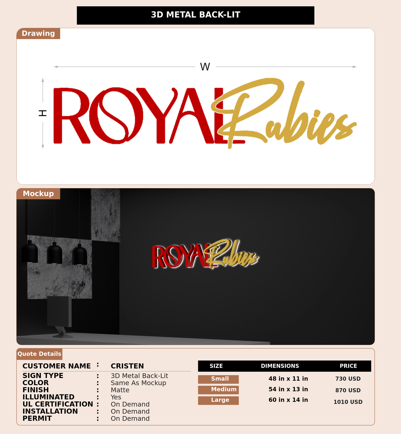 Installation services are available for an additional fee, depending on your location and the complexity of the signage.