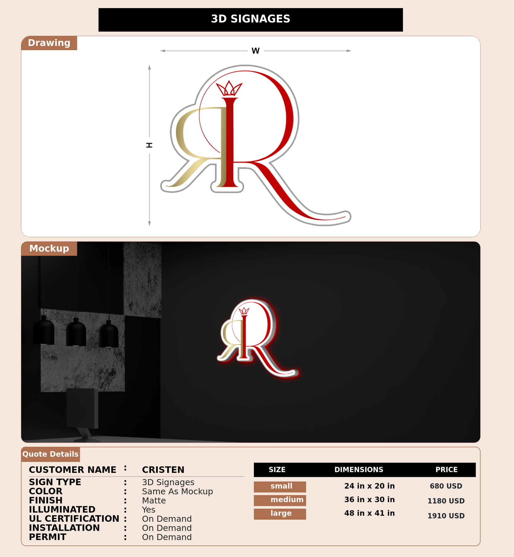 Enhance your business presence with our expertly crafted signage, made from top-quality material, to ensure longevity and durability. Fully customizable to reflect your unique brand identity, our signage offers a professional and polished appearance. Easy to install and low maintenance, it’s the perfect addition to any business setting. Trust us to deliver a product that not only meets but exceeds your expectations.