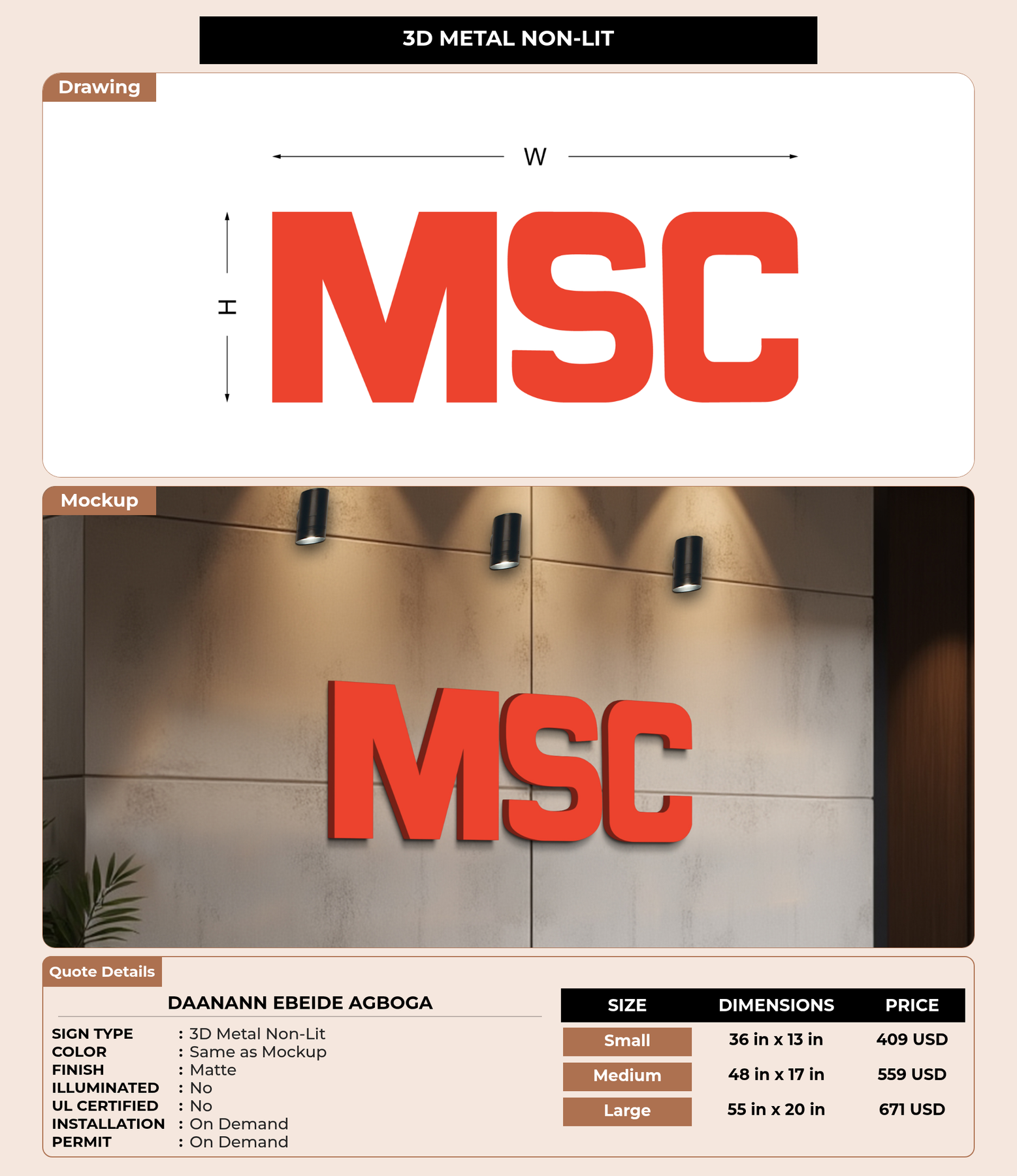 Eye-catching custom 3D sign for Daanann Ebeide Agboga