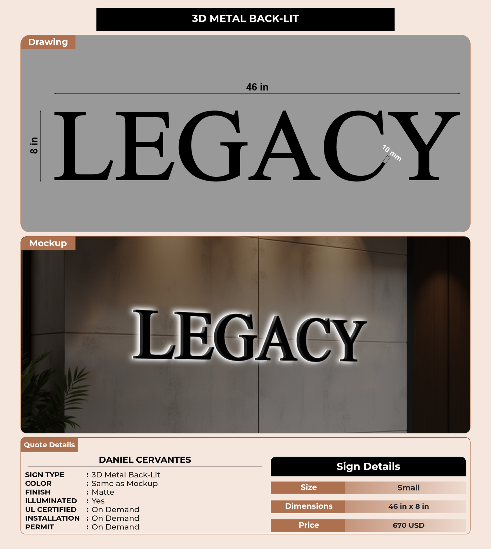 Crafted with premium material, this signage will elevate your business image, precisely mirroring your logo for a professional look.
