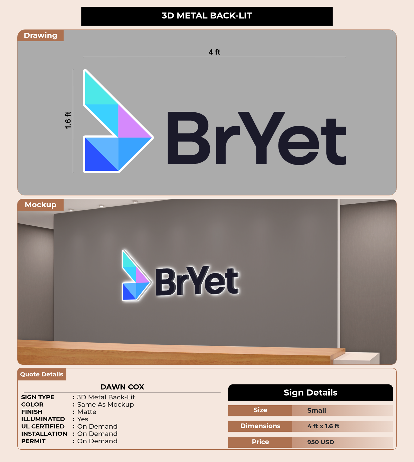 Crafted with premium material, this signage will elevate your business image, precisely mirroring your logo for a professional look.
