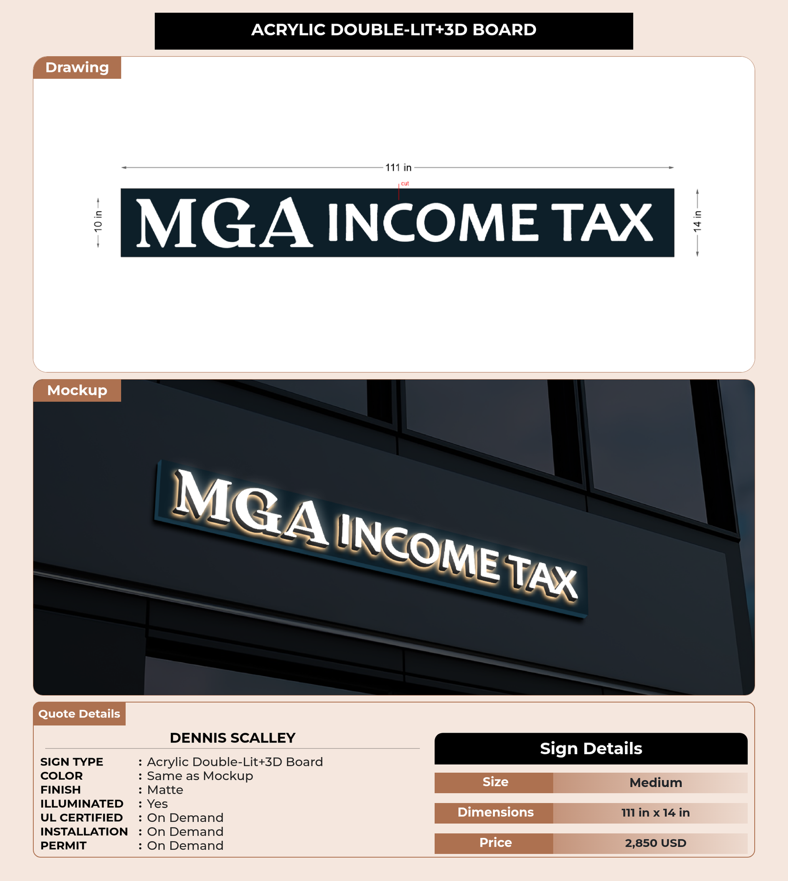 Eye-catching custom 3D sign for DENNIS SCALLEY