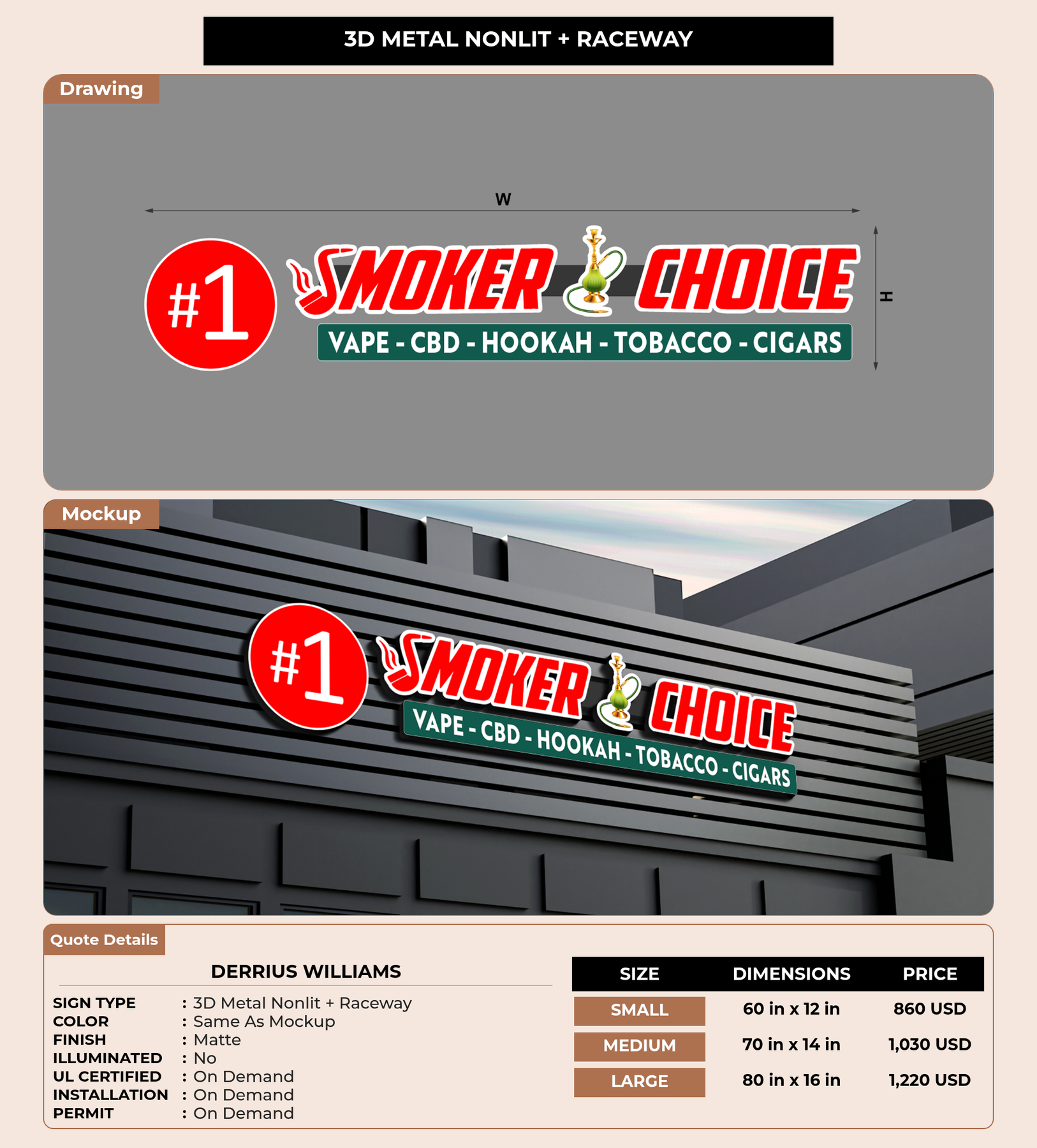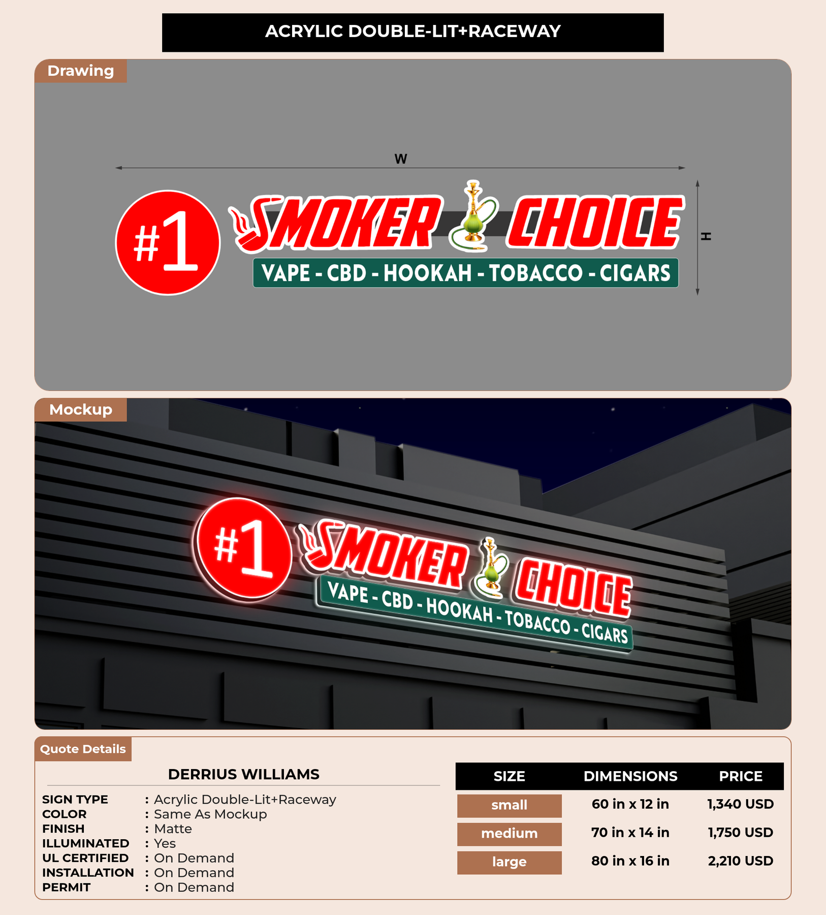 Eye-catching custom 3D sign for Derrius Williams