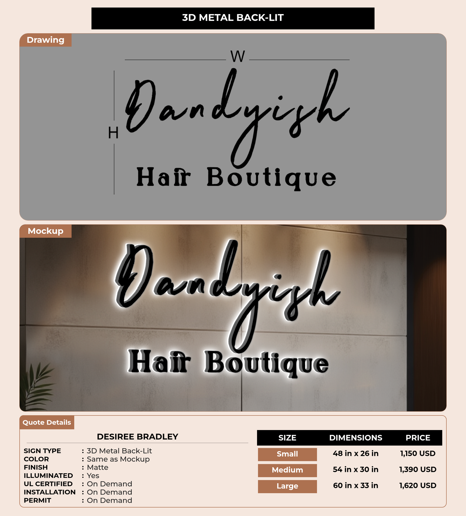 Enhance your business presence with our expertly crafted signage, made from top-quality material, to ensure longevity and durability. Fully customizable to reflect your unique brand identity, our signage offers a professional and polished appearance. Easy to install and low maintenance, it’s the perfect addition to any business setting. Trust us to deliver a product that not only meets but exceeds your expectations.