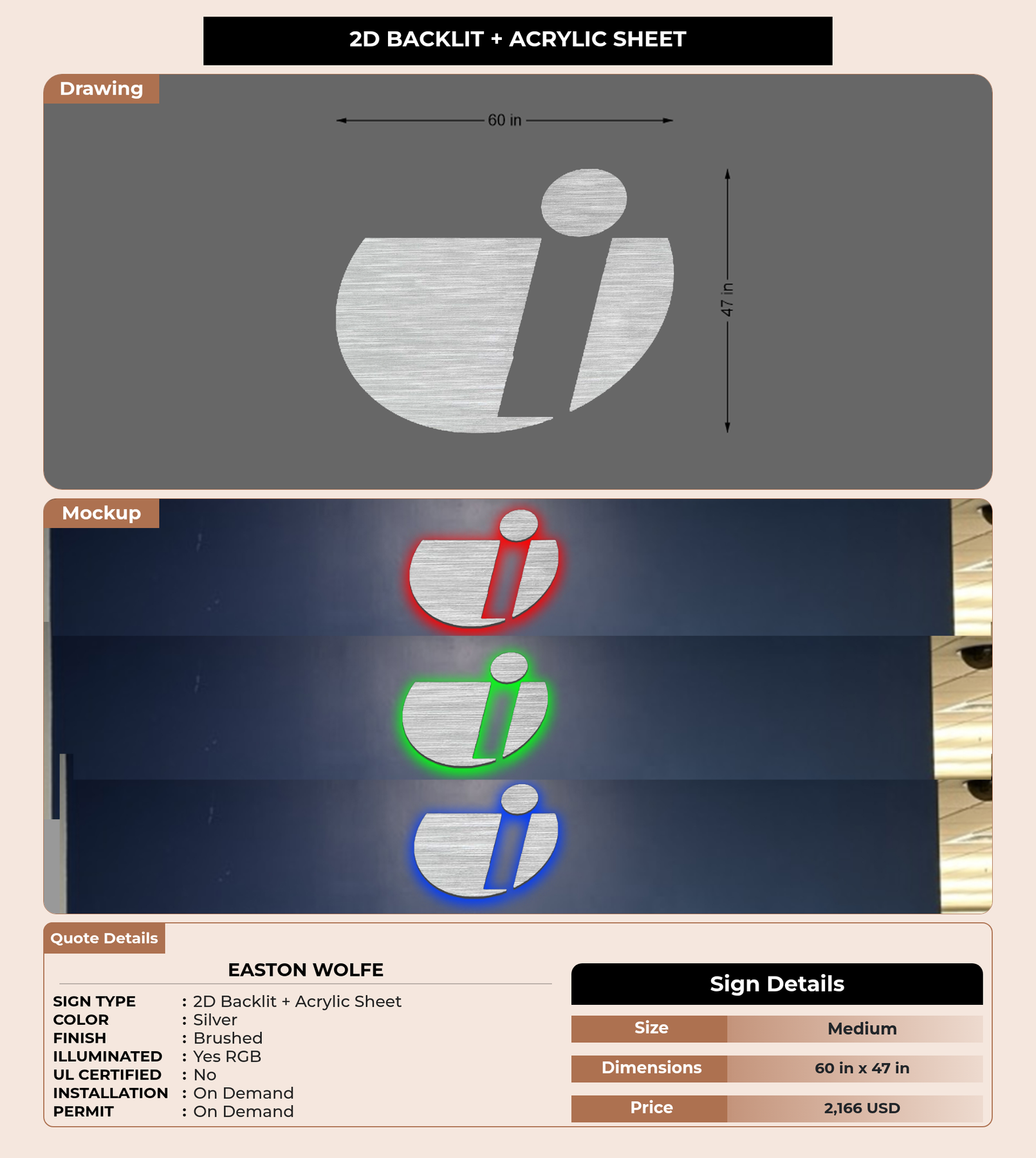 Eye-catching custom 3D sign for Easton Wolfe